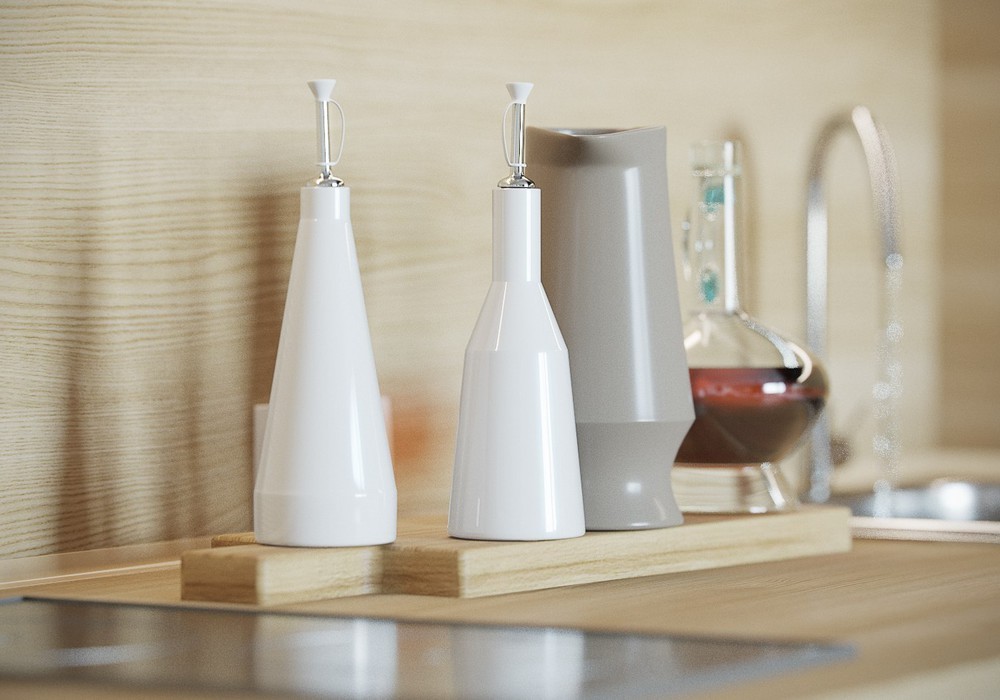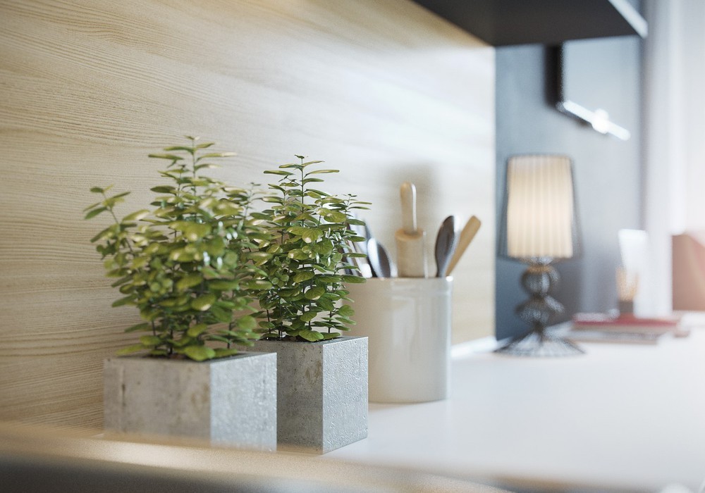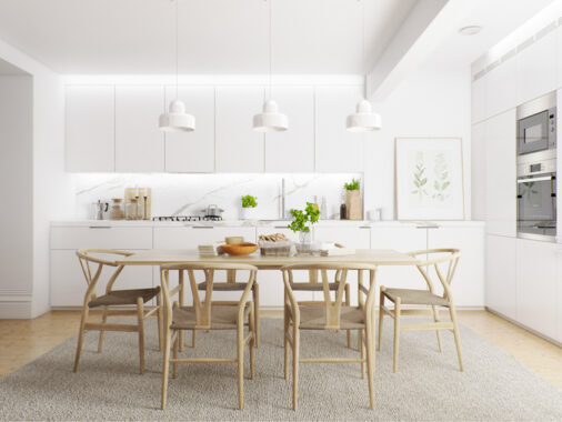 Colorful accents include green and blue. The matte white interior theme paired with light wooden tones provides the ultimate blank canvas for personal expression.