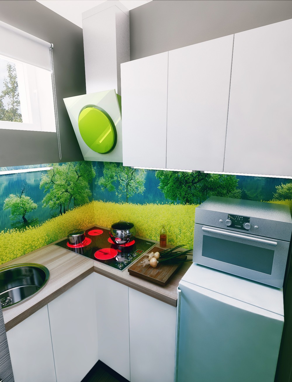 With a high window making it difficult to see outdoors, this fabulous backsplash mural offers a breathtaking view – not one to be found from most apartments.