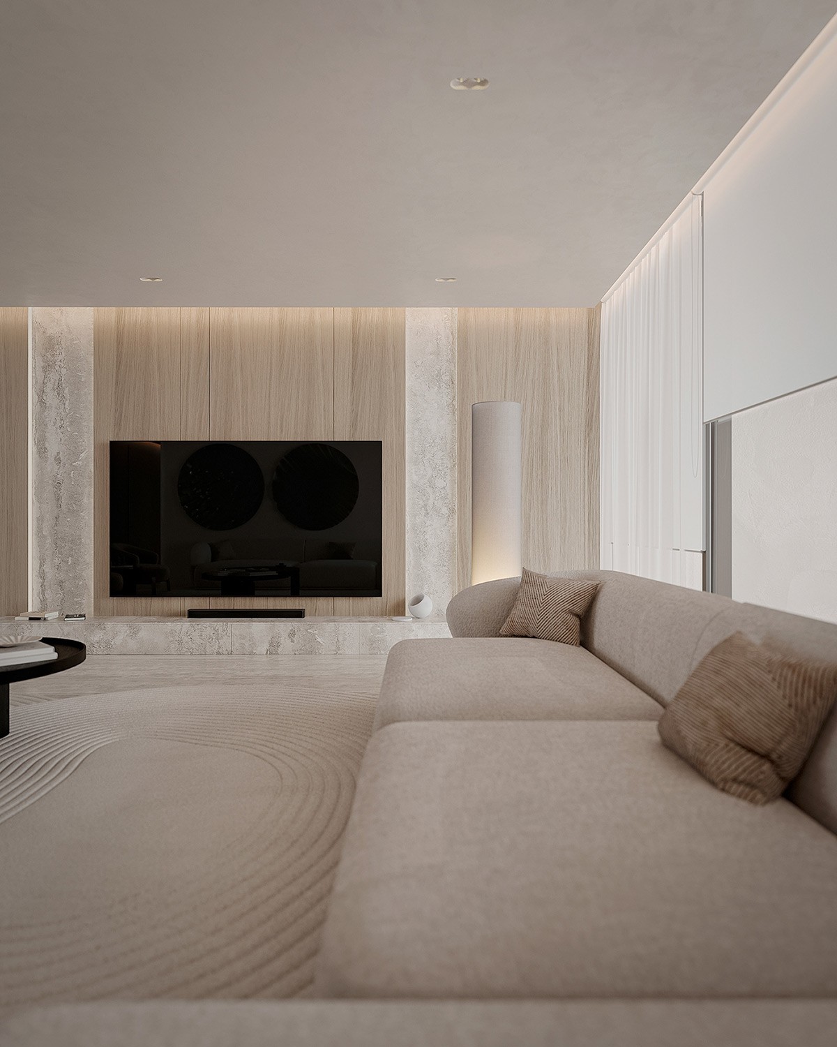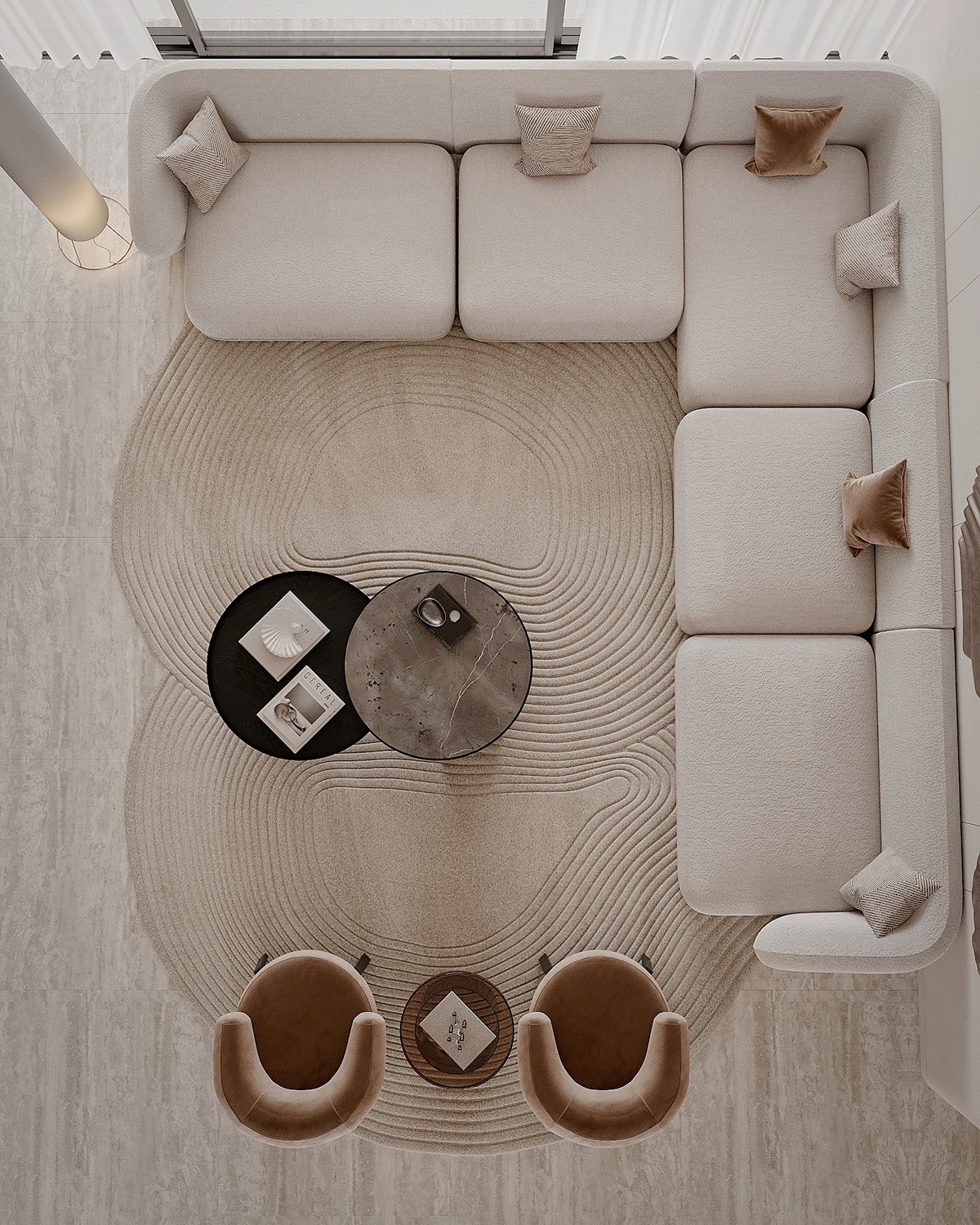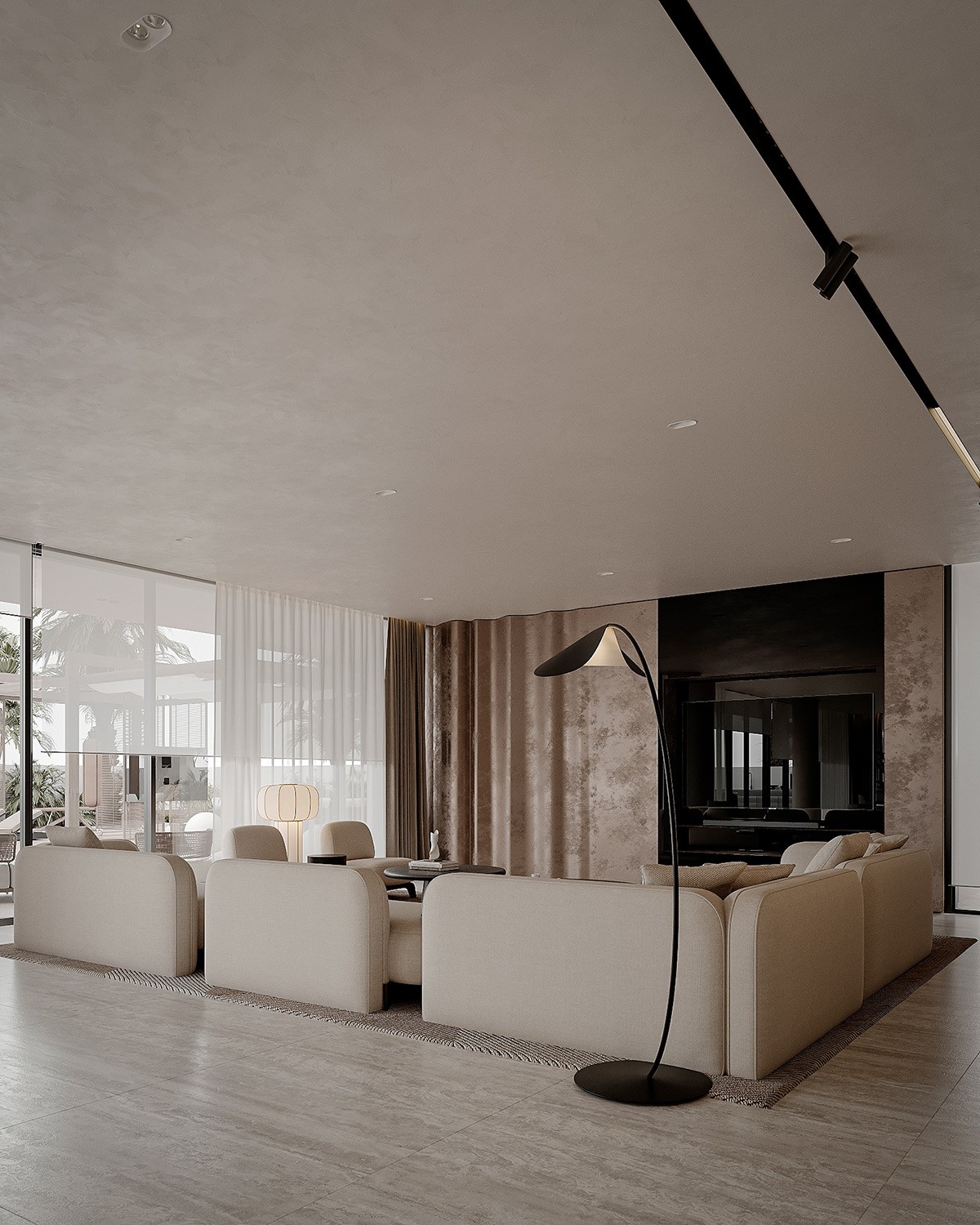 Beige decor radiates an aura of understated elegance and timeless beauty. In the realm of modern living spaces, this versatile hue has garnered tremendous favor for its ability to create a refined and sophisticated ambiance. Using the subtle warmth of soothing neutrality, beige home interiors offer serene settings for relaxation, contemplation, and peaceful family connection. In this article, we invite you to delve into 3 elegant beige living spaces, each expertly visualized by Julia Tkachenko. We’ll look at how dark accents help to anchor a light beige living room scheme, how thoughtful furniture selections boost ordinary spaces into high-end sanctuaries, and how creative lighting installations are truly transformative.