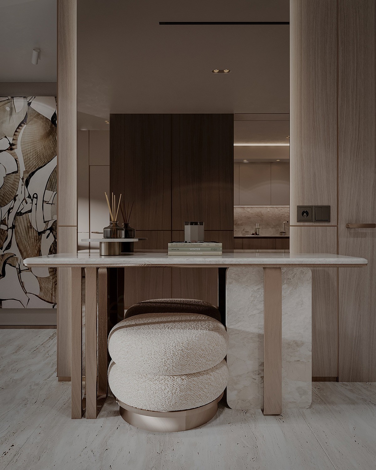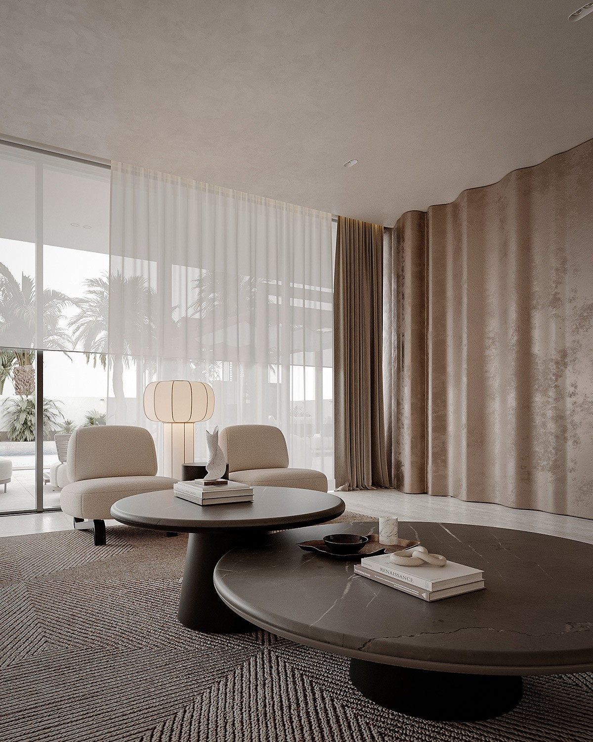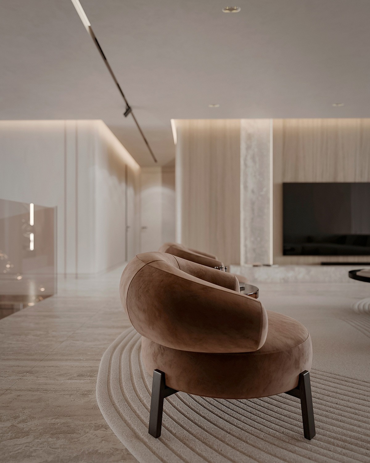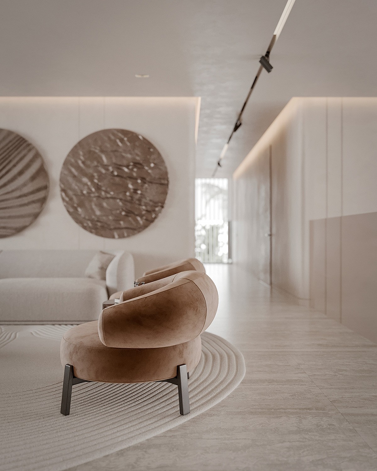 Beige decor radiates an aura of understated elegance and timeless beauty. In the realm of modern living spaces, this versatile hue has garnered tremendous favor for its ability to create a refined and sophisticated ambiance. Using the subtle warmth of soothing neutrality, beige home interiors offer serene settings for relaxation, contemplation, and peaceful family connection. In this article, we invite you to delve into 3 elegant beige living spaces, each expertly visualized by Julia Tkachenko. We’ll look at how dark accents help to anchor a light beige living room scheme, how thoughtful furniture selections boost ordinary spaces into high-end sanctuaries, and how creative lighting installations are truly transformative.