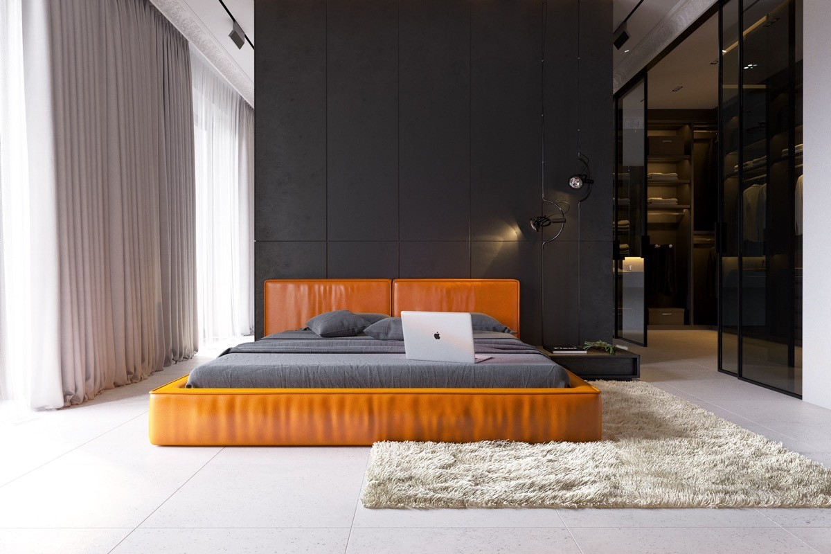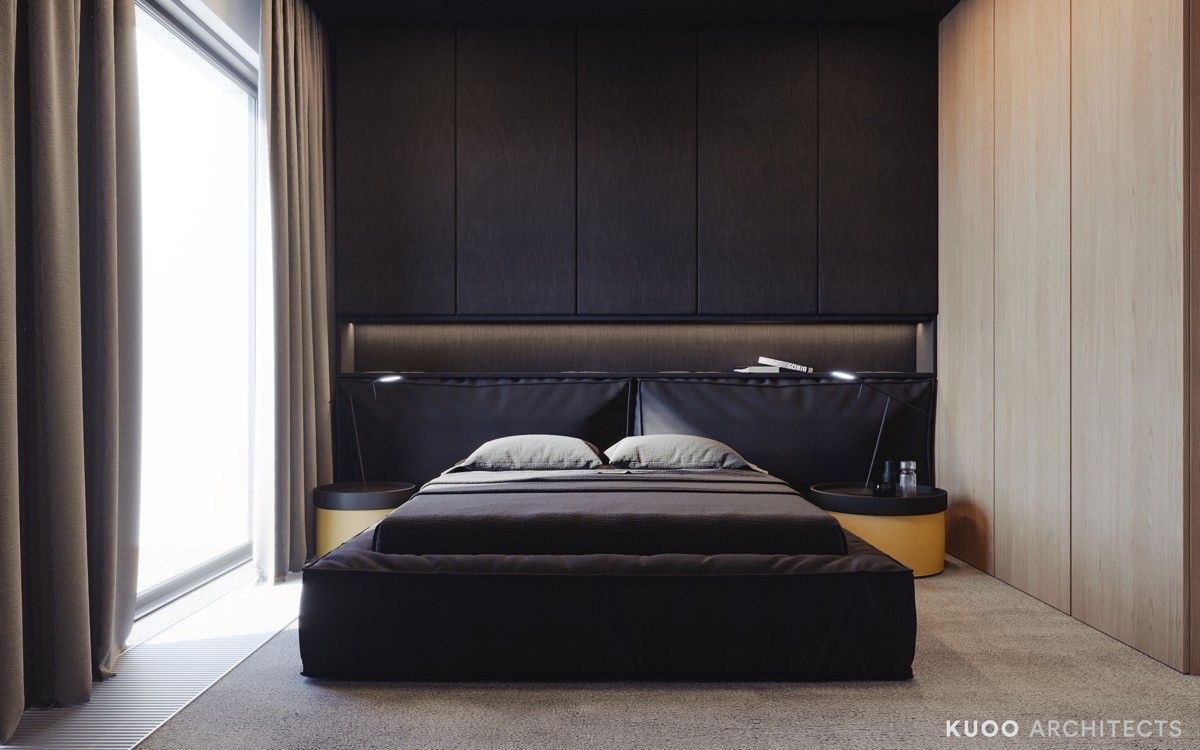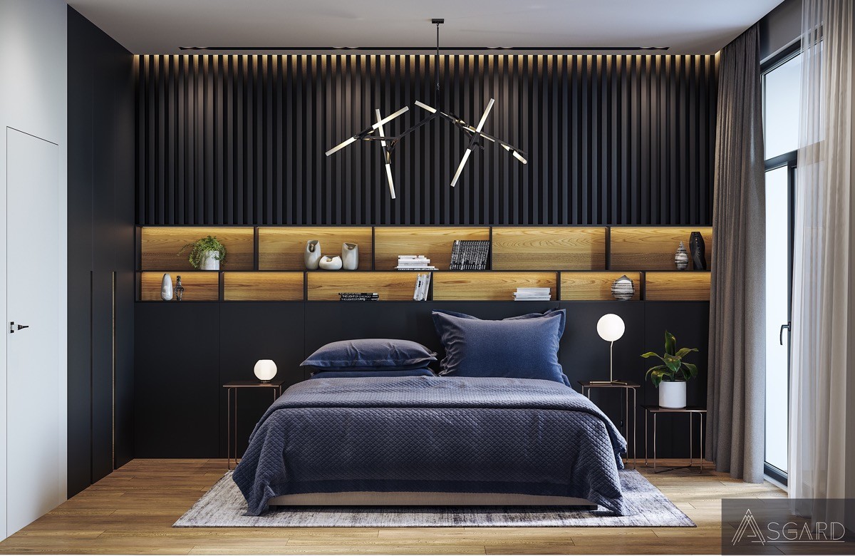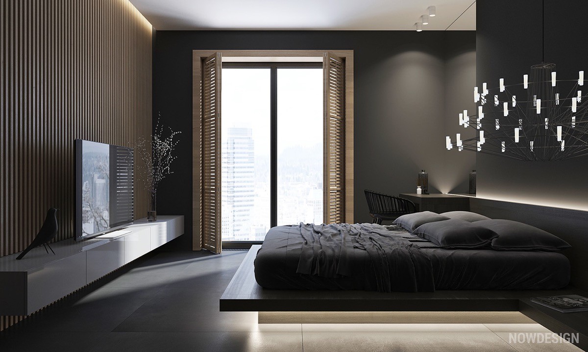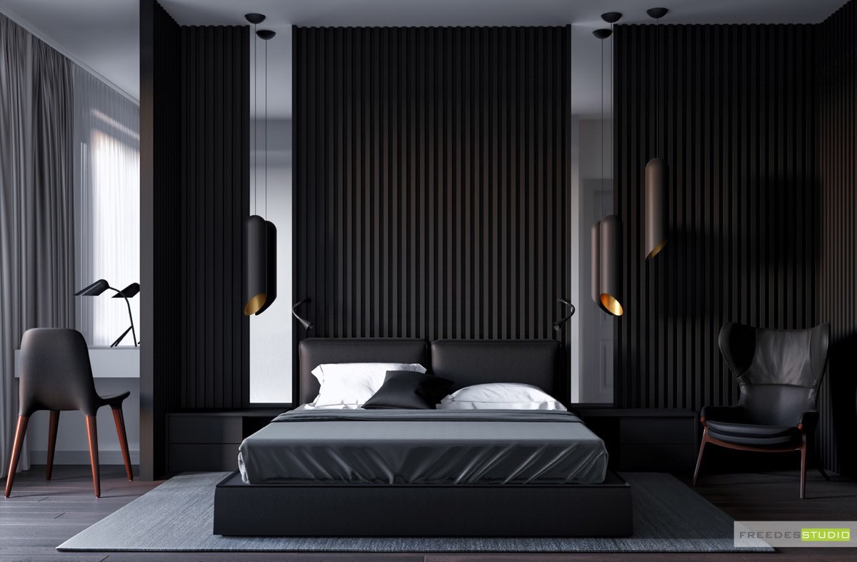 Keep it simple. An all black bedroom suits minimalist bedroom furniture, with clean linear shape.