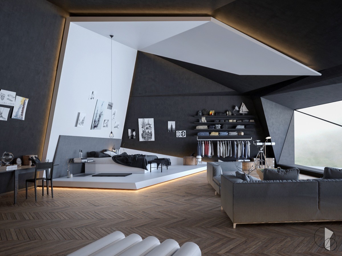Keep it cosy. That close feeling that all black decor evokes presents a positive effect in an oversized loft space.