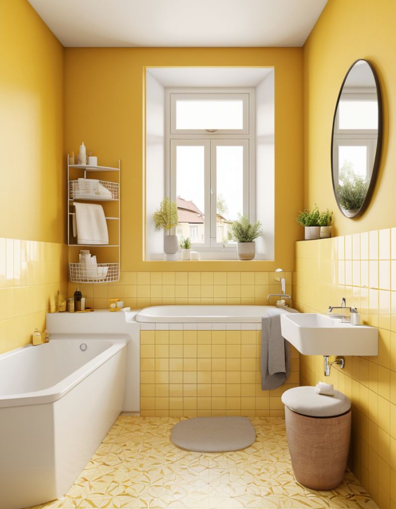 Bathrooms are often sterile or overly neutral, why not add some gentle color? Butter yellow in this space feels spa-like and cheerful at once. Consider painting a vanity in this shade or swapping out your mirror frame for one in a golden hue. You can also incorporate butter yellow through towels, rugs, a shower curtain, or even a tiled backsplash if you’re up for a renovation. This color reflects light beautifully in smaller spaces, giving your bathroom a clean yet cozy feel. Pair it with eucalyptus greens, blush pinks, or crisp whites for a fresh, calming palette. Even small accents, like a soap dispenser or toothbrush holder, can make a surprising difference.