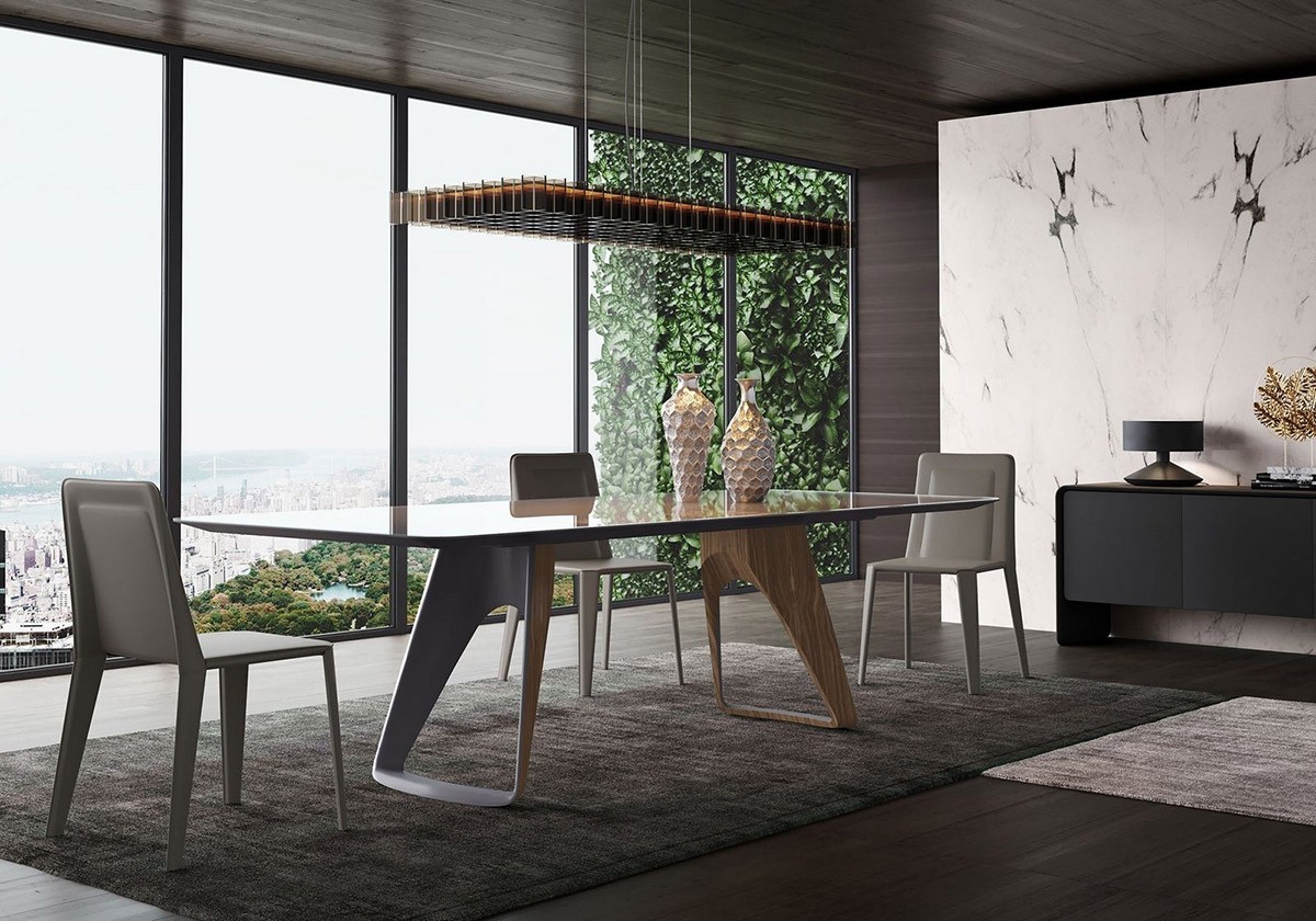 Presentation is a crucial ingredient in any recipe – after all, every dish is first enjoyed with the eyes. This idea can extend to the entire dining room environment where atmosphere and ambiance set the tone before anyone even lifts a fork. Glass-topped dining tables are the focus of this product spotlight. Glass surfaces feel clean, sophisticated, and streamlined. If transparent, a glass tabletop can extend the decorative influence of its base below. Glass tables often trend contemporary, but this collection spans a variety of styles to suit a spectrum of interior themes. Find the perfect glass table for your home with these handpicked selections.