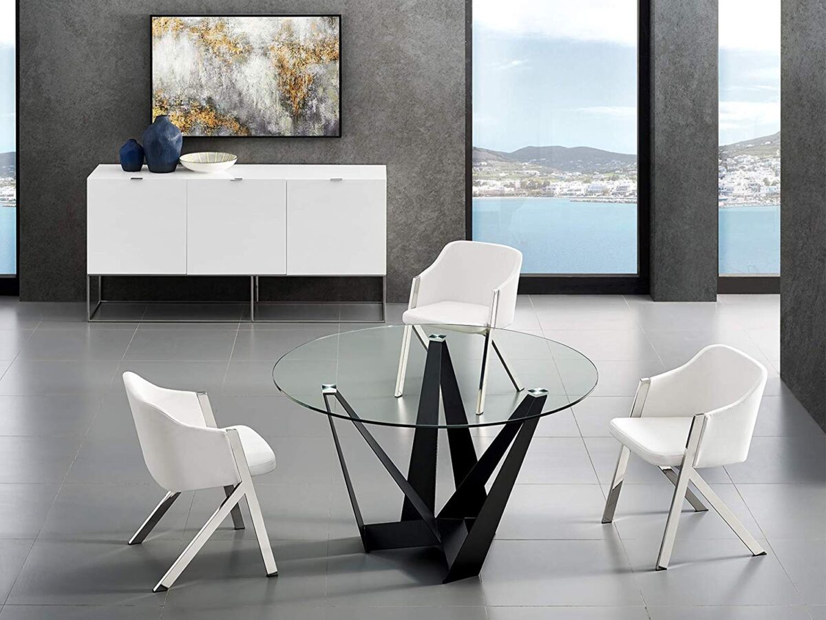 Round Glass Dining Table With Modern Steel Base