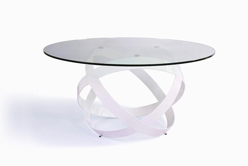 A dining table that also doubles as a conversation starter, this design features a sculptural base constructed from sturdy ribbons of steel fashioned into a smooth and fascinating sphere. The powder coated white finish lends a minimalistic touch. Seat five to six guests comfortably with this striking selection.