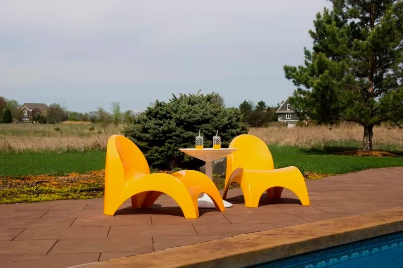 Add a pop of sunshine to your backyard, even on cloudy days. These bold and bright stunners are easy to clean and weatherproof, plus the table you see is included. Don't like yellow? Black, White, or Red is also available.