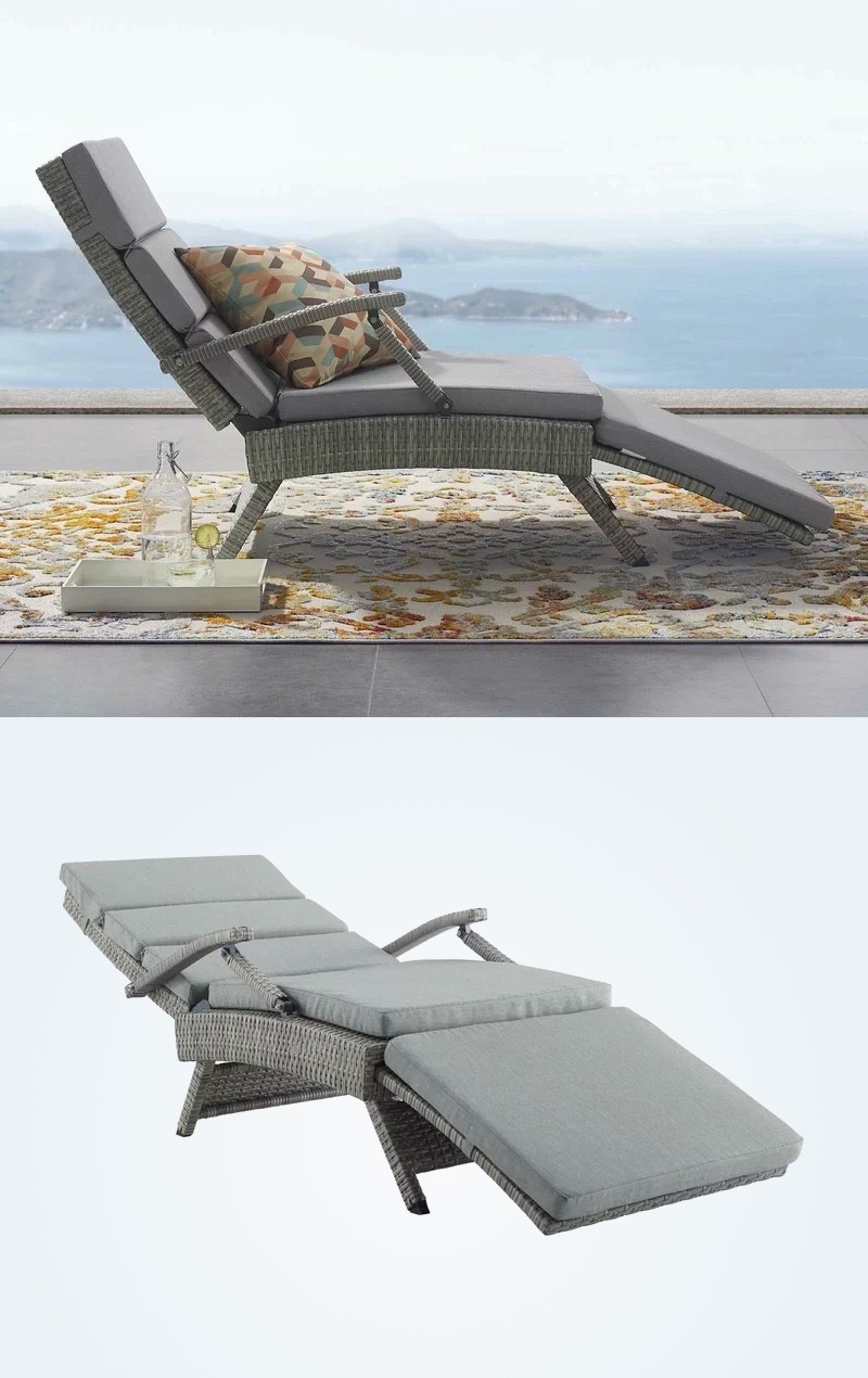 Meet the La-Z-Boy chair of the outdoor world! This reclining grey chaise lounge keeps comfort in mind, but that doesn't mean its forgets about style. Its wicker build makes it the ideal piece to instantly infuse a space with contemporary style and its comfy cushions are available in 6 colors.