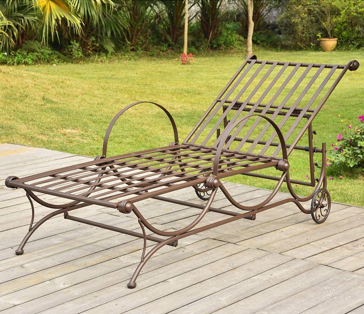 Add an elegant touch to your backyard decor with this traditional metal lounger. This option features an elegantly curved 'Mandalay' design, 5 back rest positions, and sturdy iron build. Available in Hammered Bronze and Dark Brown (shown).