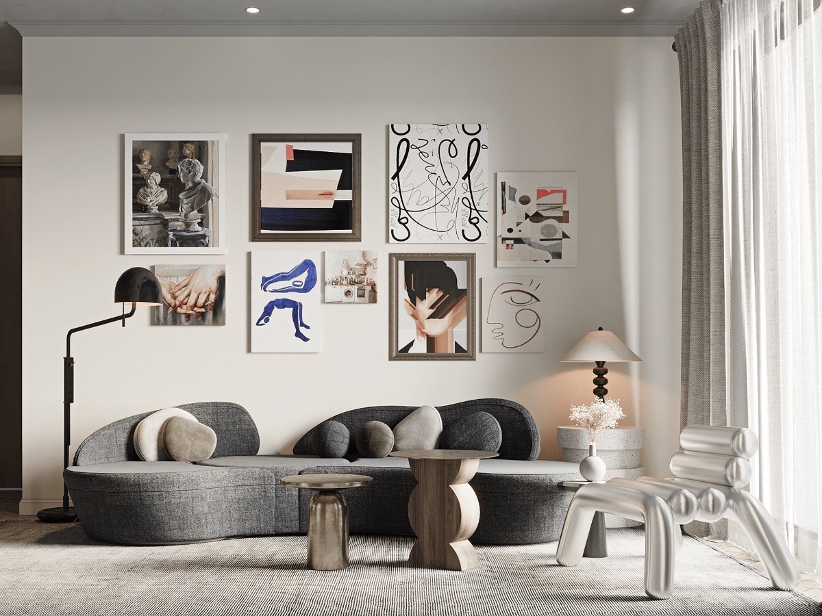 All about art. Living room furniture plays second-fiddle to intriguing art and sculpture in this eclectic living room design. The artwork gives the homeowner and their guests material on which to ponder and dream.