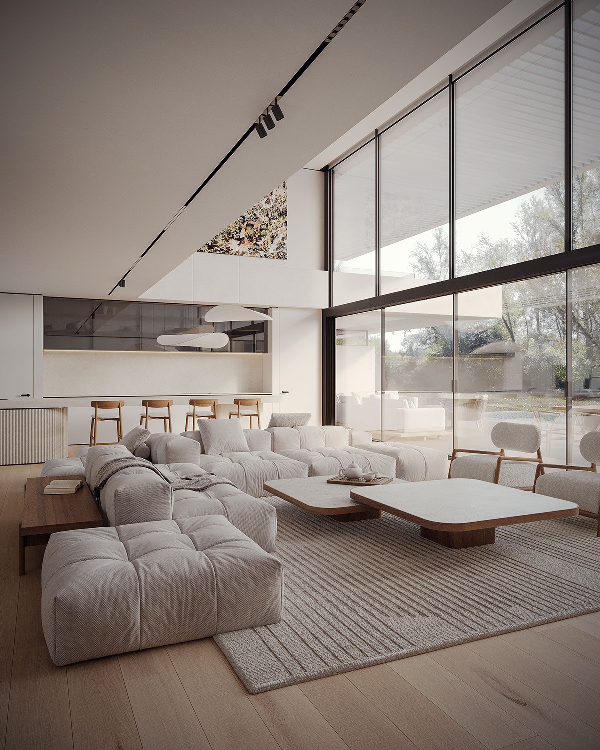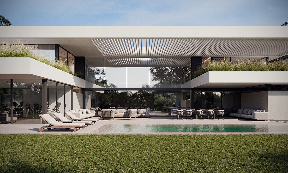 Welcome to a villa where modern architecture meets nature in perfect harmony. This stunning residence by Vastu Villa features expansive glass walls that blur the lines between indoor and outdoor living. The green roofs not only add an eco-friendly touch but also enhance the villa's seamless integration with its lush surroundings. Inside, the open-concept design creates a light-filled, airy ambiance, adorned with plush, neutral furnishings that invite relaxation. This villa is a testament to the beauty of simplicity and the elegance of thoughtful design, offering a serene retreat that celebrates both contemporary style and natural elements. Explore this unique blend of luxury and tranquility.