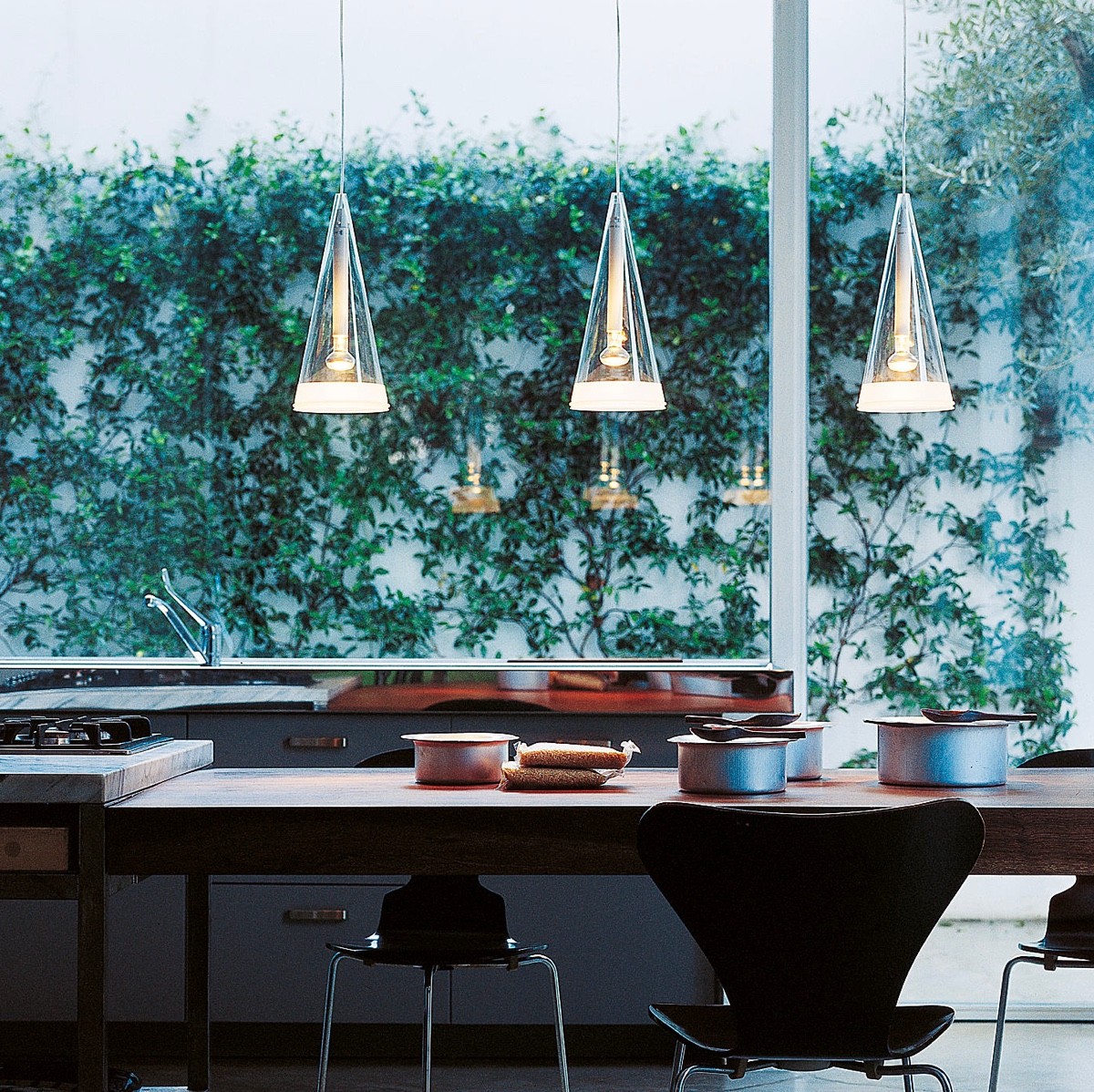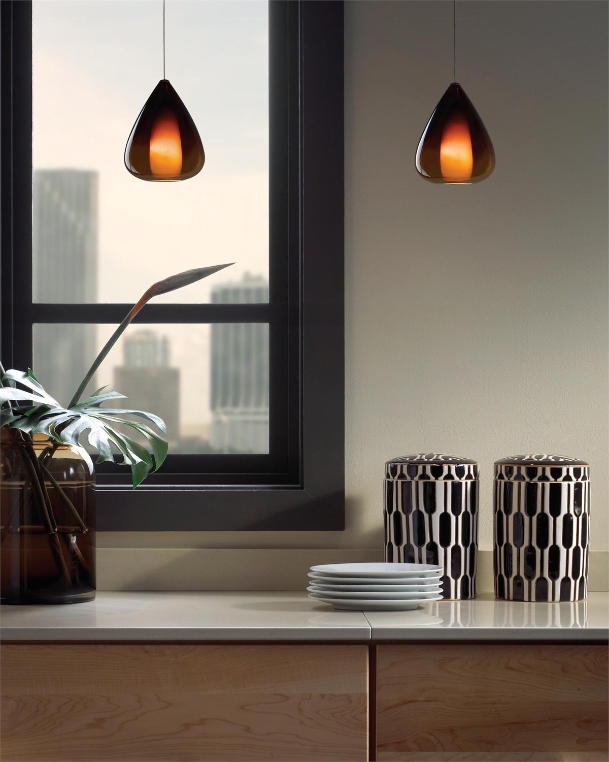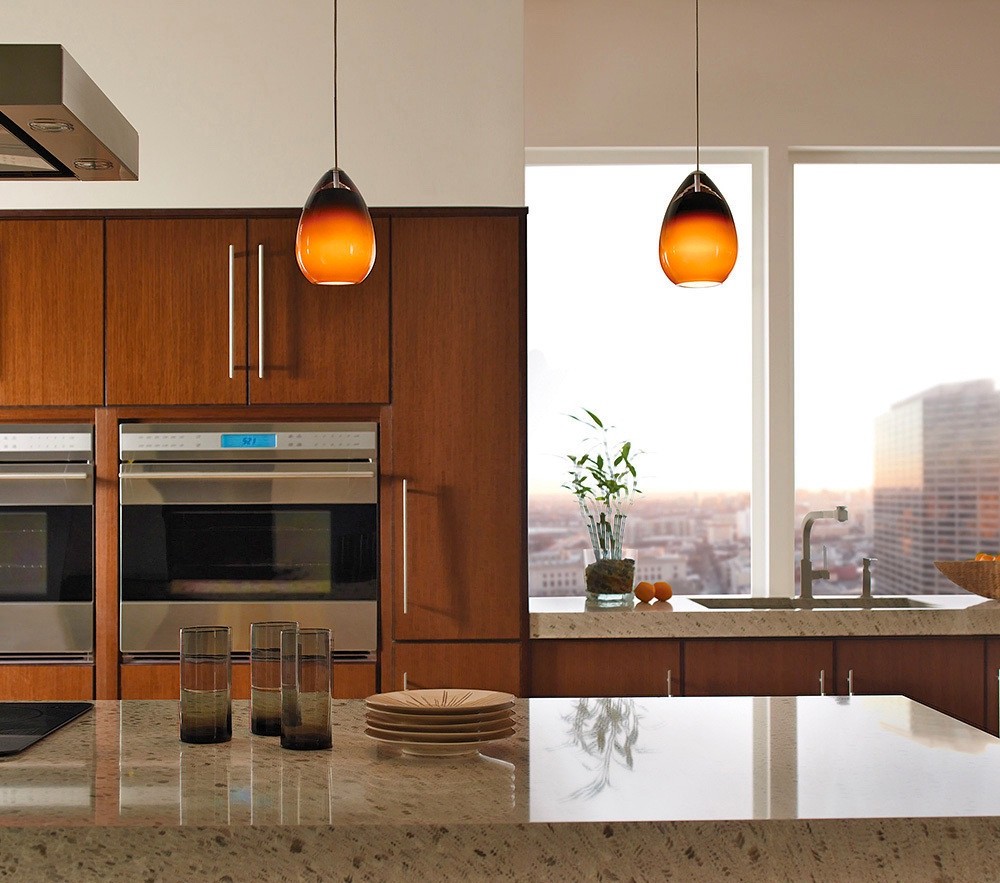 Kitchen lighting requires the careful consideration of two purposes. Ideally, it should illuminate the work surfaces where you conduct most of your preparation, and it should provide welcoming ambiance during dinner or evening hours. Pendants fill a special role in the kitchen, in addition to the two requirements mentioned previously – kitchen pendants are the preferred choice for decorators who want to make a creative statement in an otherwise utilitarian space, filling in the emptiness between the countertops and ceiling with suspended works of art. If you're looking for kitchen inspiration, this modern lighting guide might help!