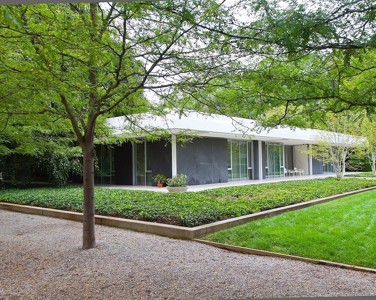 The Morris Greenwald House in Connecticut was designed by Ludwig Mies van der Rohe in 1955. The house showcases Mies van der Rohe’s distinct modernist style with clean lines and seamless indoor and outdoor spaces integration.