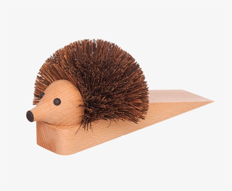 Spiky fibers give this hedgehog doorstop a fun and textural aesthetic sure to stand out. The light wood wedge would fit well within a Scandinavian or modern interior style.
