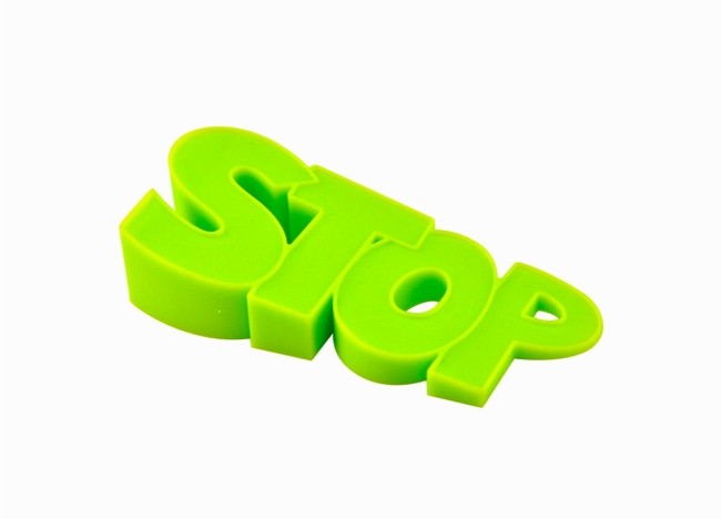Very literal! This doorstop might be a fun gift for a comic artist or other fan of typography. The flexible silicone form ensures it'll hold doors that are quite heavy. Buyers have a choice of black, lime green, or lemon yellow.