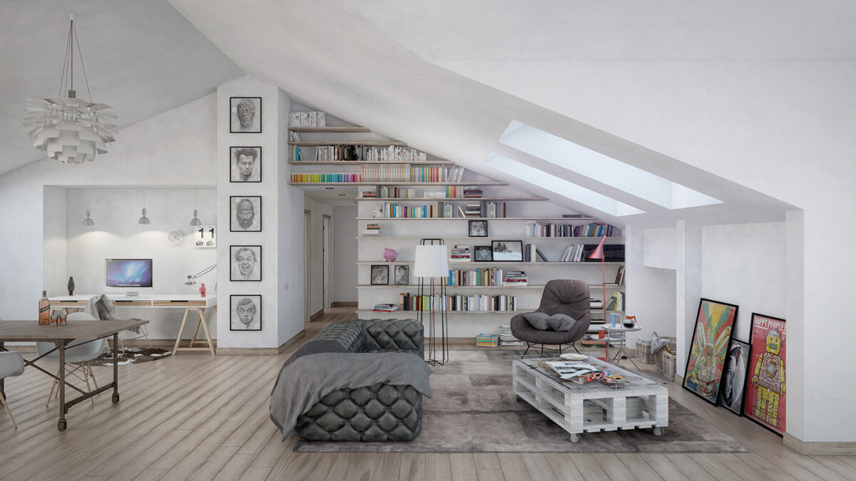 White painted brick gives this industrial loft a lot more warmth than a bare red option would.