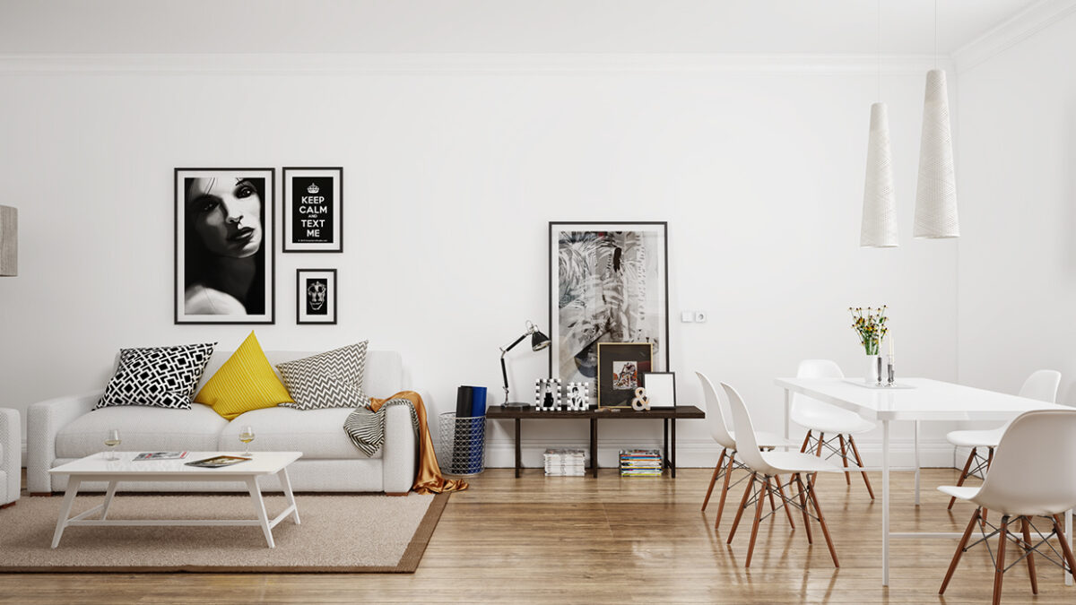 A gallery wall is a great way to add personality to an otherwise minimal design.