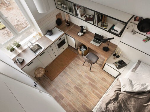 Don’t be afraid of colourful bathroom furniture. Bathroom furniture has become colour shy in recent years, but it’s not against the law to make a departure from all that is neutral. Try changing out white cupboard doors for something with more personality; you could choose floor tiles to carry the new colour underfoot too. Do balance out your gorgeous new accents with some softer pieces too though, like this grey unit and vanity stool.