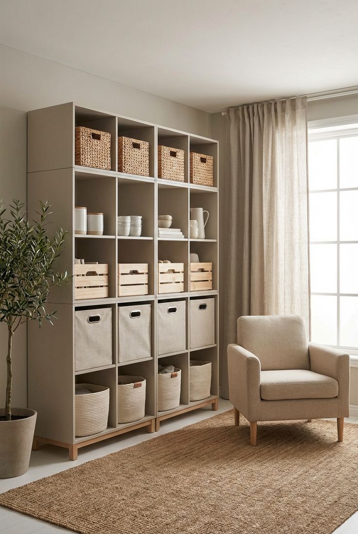 Open storage works well for ADHD because it keeps items visible and accessible. However, without structure, it can quickly look chaotic. The solution is gentle containment. Use baskets, trays, and containers to group similar items together while keeping them visible. Choose calming, consistent colors to reduce visual overwhelm. This approach allows you to see what you own without feeling overstimulated. When storage feels calm instead of chaotic, your brain experiences less resistance to maintaining it, making organization more sustainable over time.