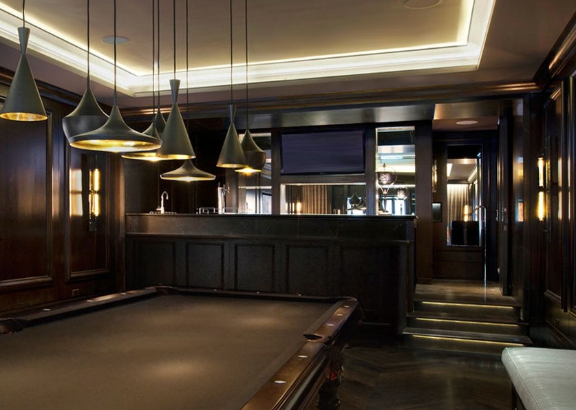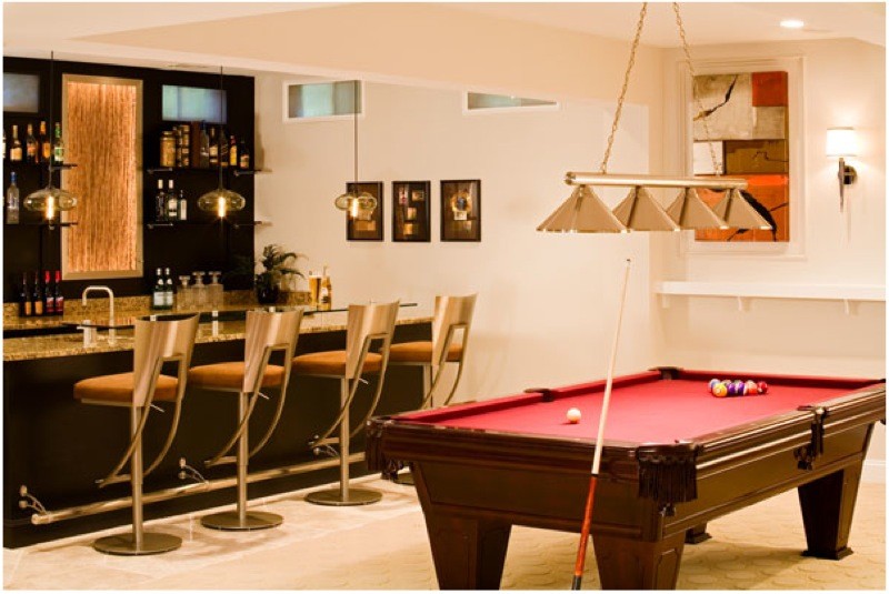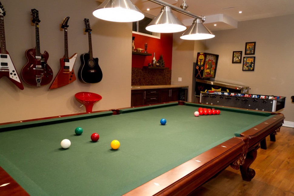 Game rooms such as this are a popular room option for many basements especially when the man of the house yearns for a man cave to call his own.