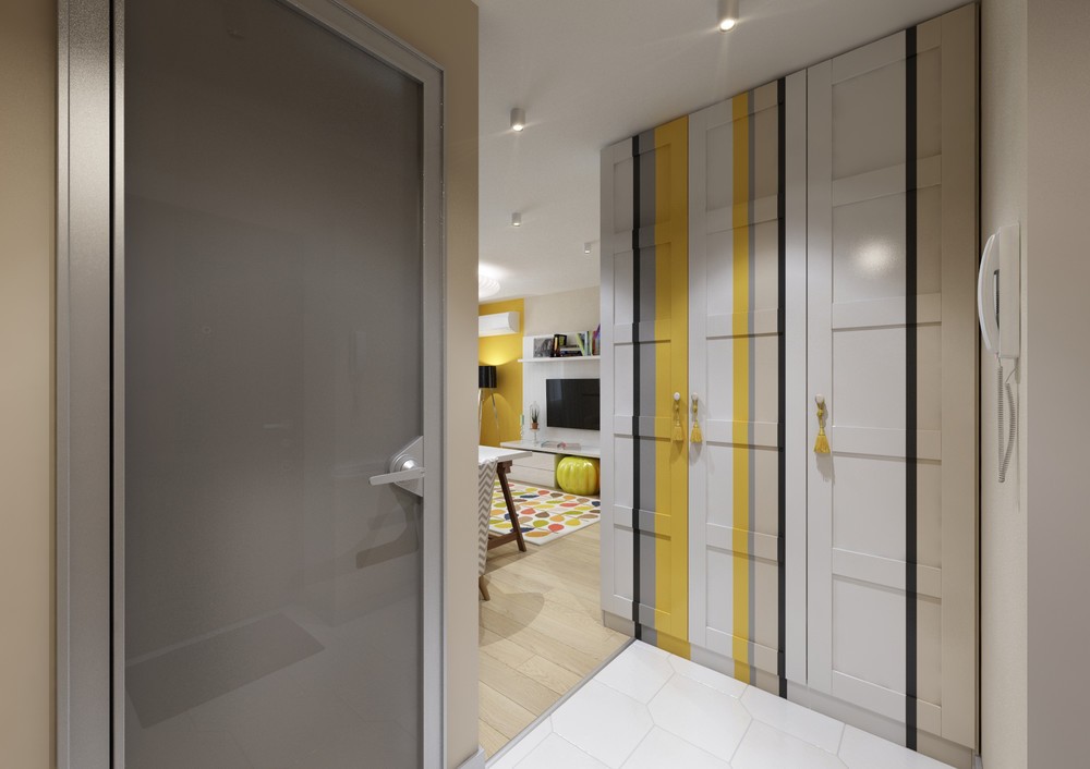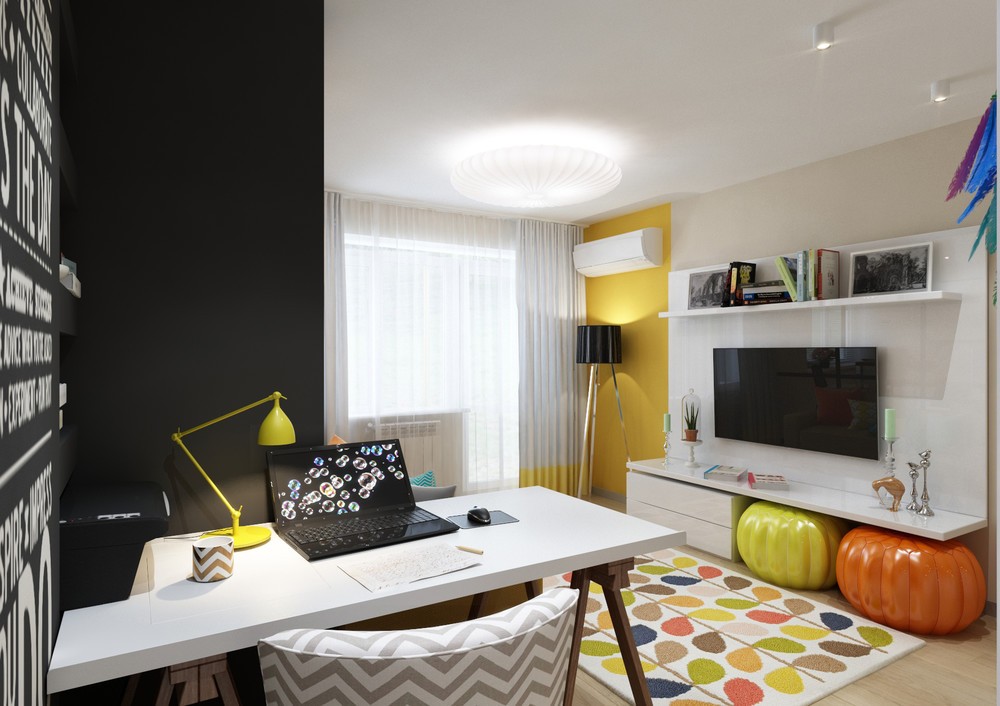 While a full accent wall may have proved too much for such a small space, this refreshing stripe of lemon yellow really hits the spot.