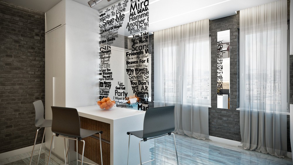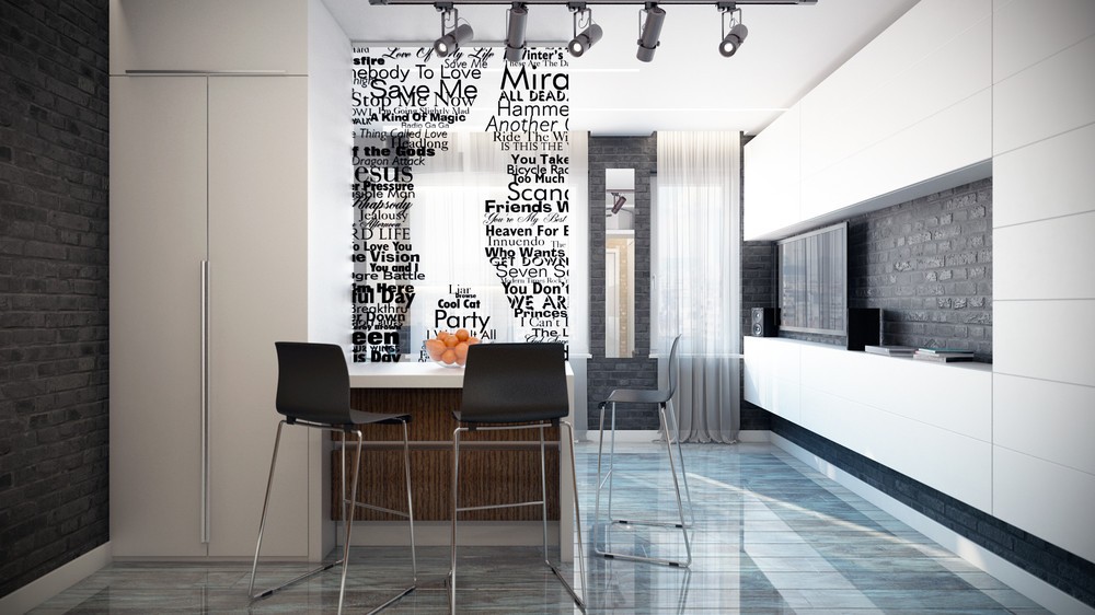 Brick accent walls offer an interesting backdrop with a strong industrial appeal, its dark charcoal treatment providing a moody and urban atmosphere.
