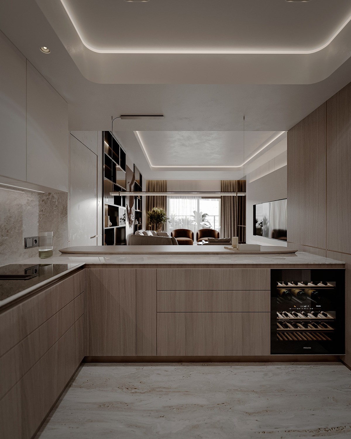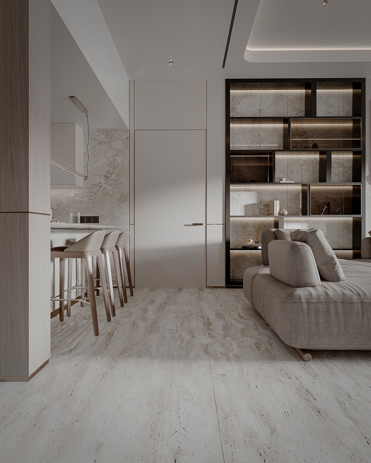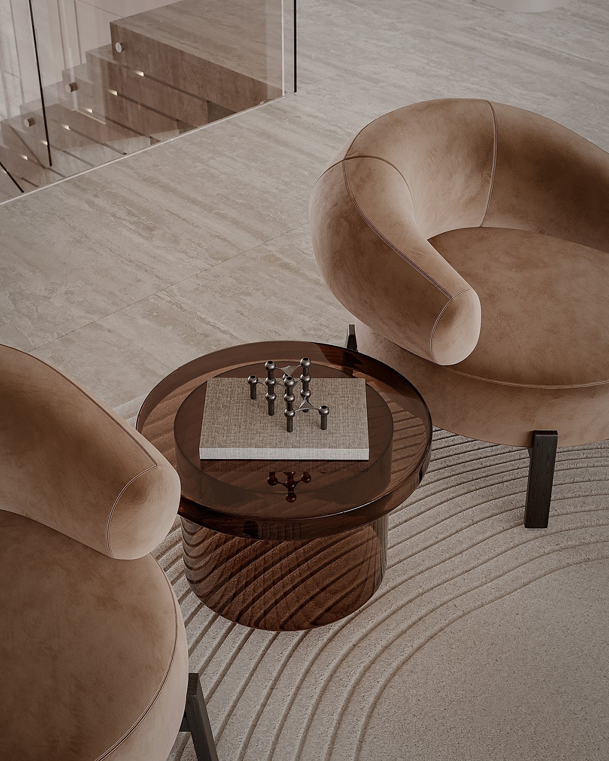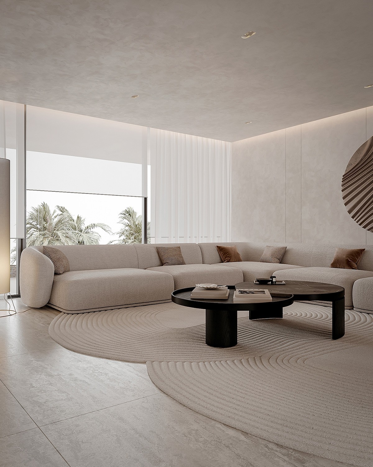 Beige decor radiates an aura of understated elegance and timeless beauty. In the realm of modern living spaces, this versatile hue has garnered tremendous favor for its ability to create a refined and sophisticated ambiance. Using the subtle warmth of soothing neutrality, beige home interiors offer serene settings for relaxation, contemplation, and peaceful family connection. In this article, we invite you to delve into 3 elegant beige living spaces, each expertly visualized by Julia Tkachenko. We’ll look at how dark accents help to anchor a light beige living room scheme, how thoughtful furniture selections boost ordinary spaces into high-end sanctuaries, and how creative lighting installations are truly transformative.