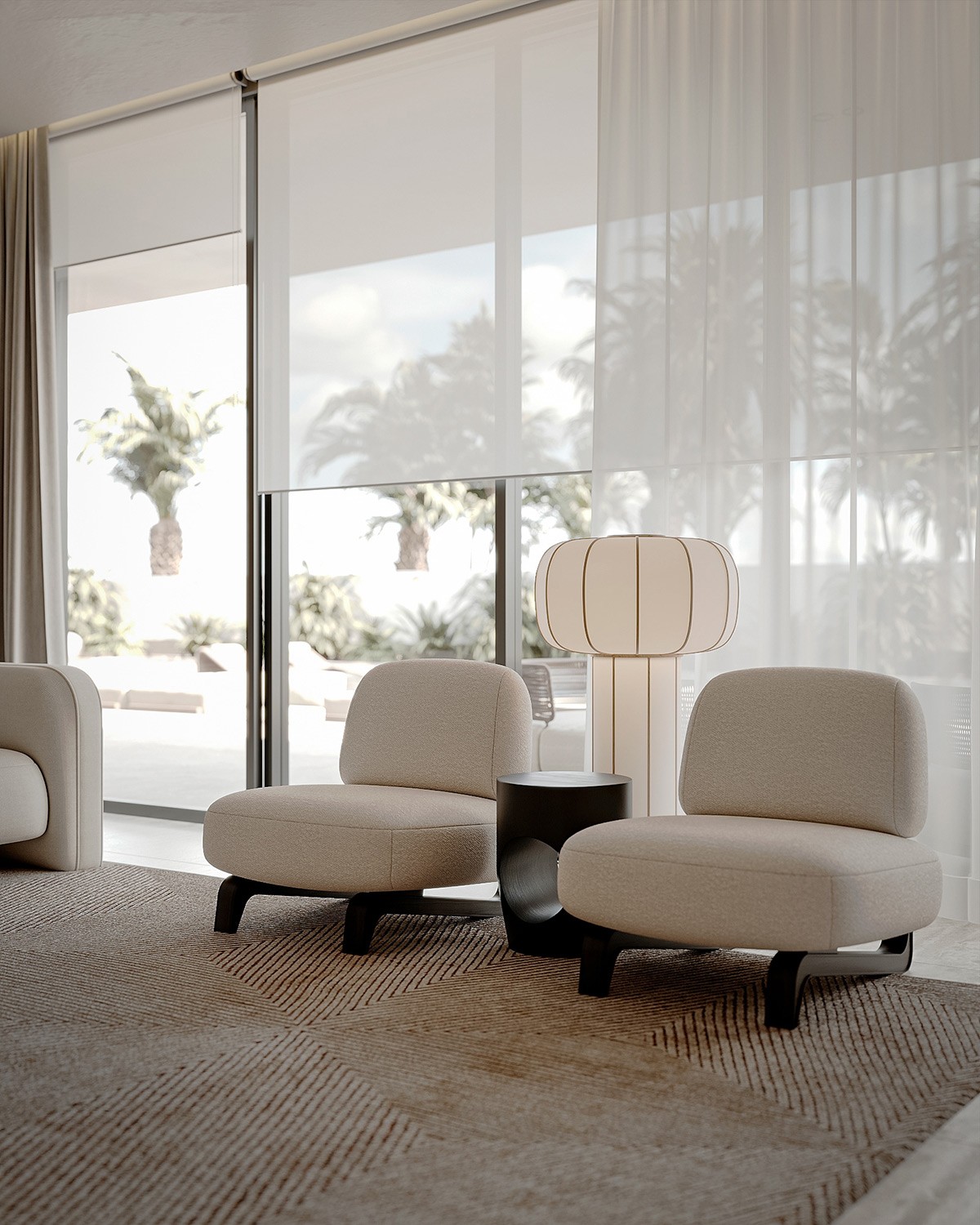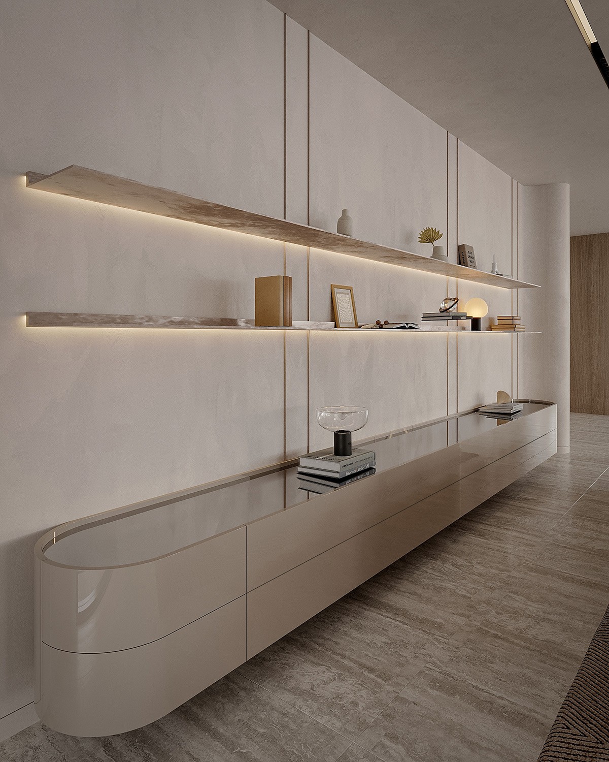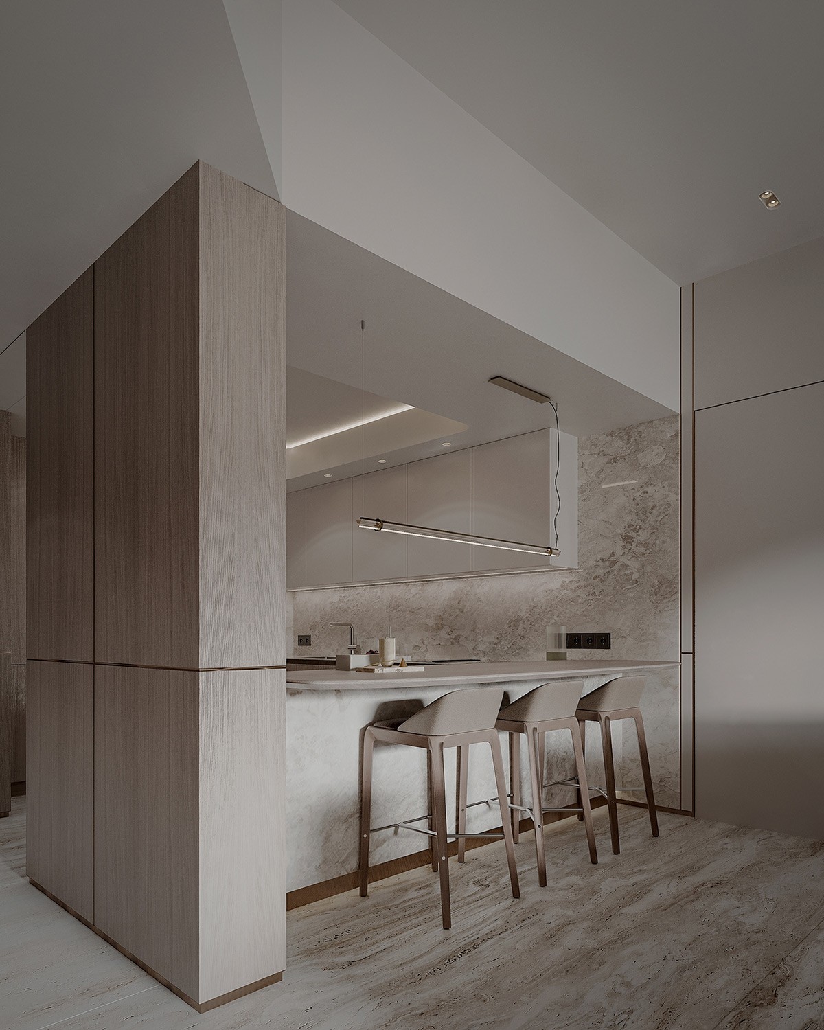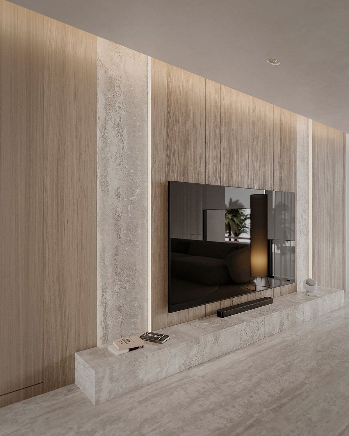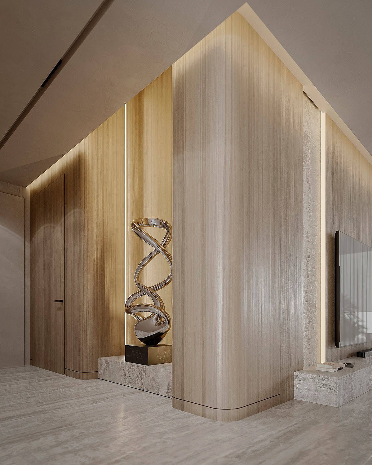 Beige decor radiates an aura of understated elegance and timeless beauty. In the realm of modern living spaces, this versatile hue has garnered tremendous favor for its ability to create a refined and sophisticated ambiance. Using the subtle warmth of soothing neutrality, beige home interiors offer serene settings for relaxation, contemplation, and peaceful family connection. In this article, we invite you to delve into 3 elegant beige living spaces, each expertly visualized by Julia Tkachenko. We’ll look at how dark accents help to anchor a light beige living room scheme, how thoughtful furniture selections boost ordinary spaces into high-end sanctuaries, and how creative lighting installations are truly transformative.