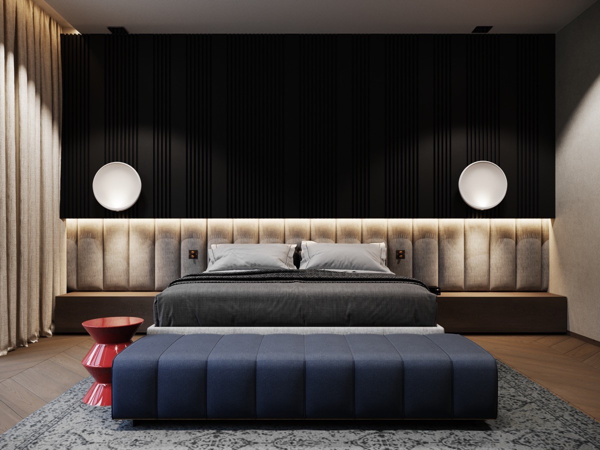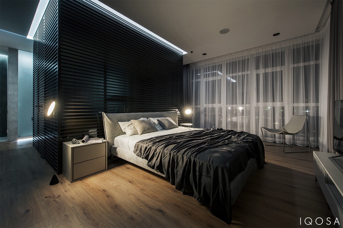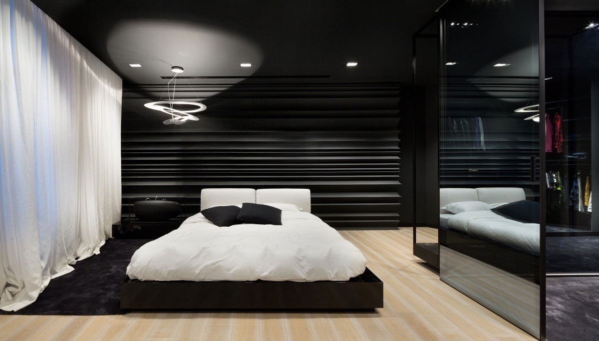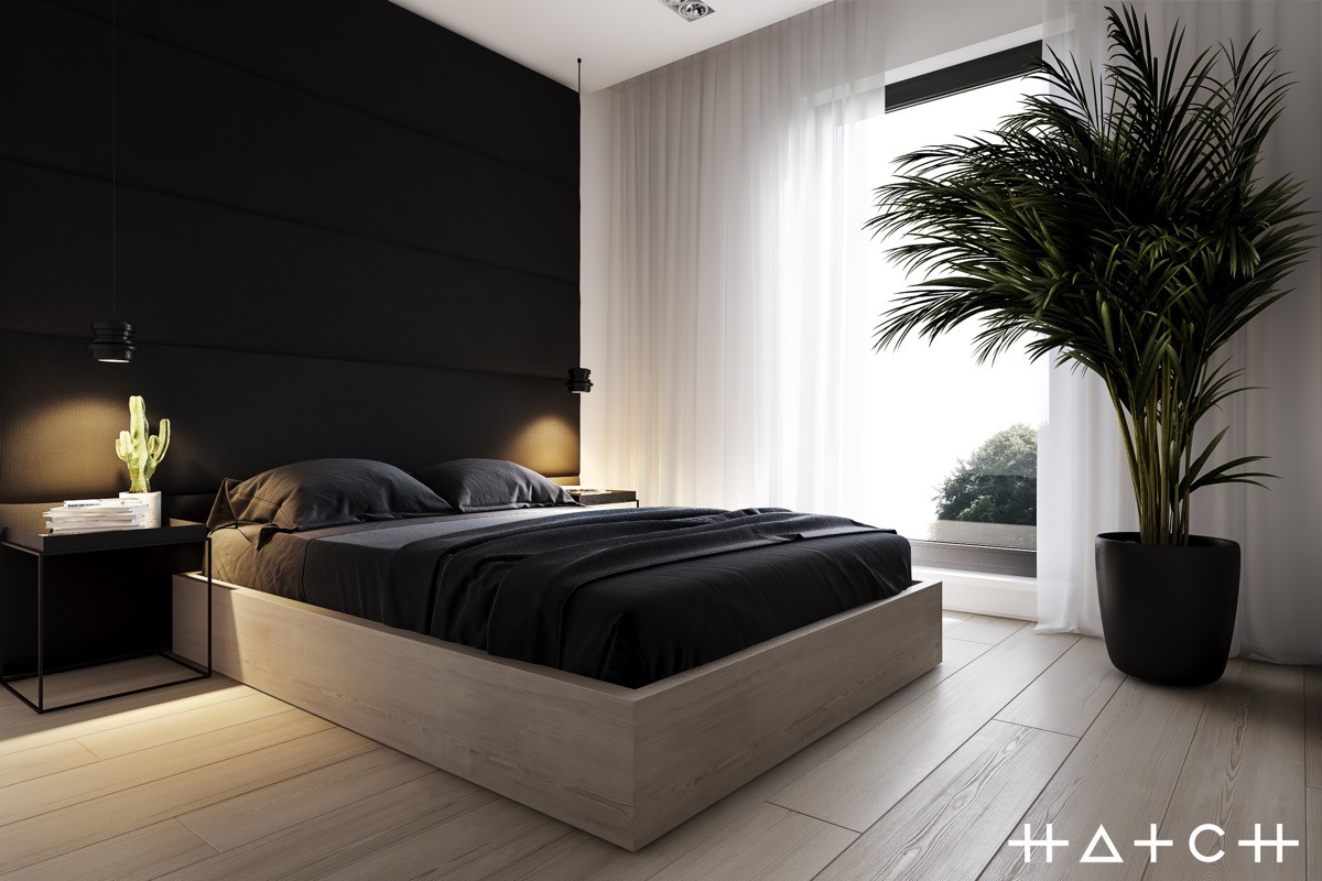 Keep it simple. An all black bedroom suits minimalist bedroom furniture, with clean linear shape.