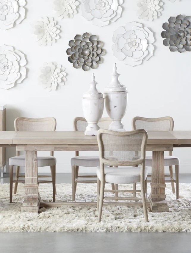 Inspired by the hugely popular French country decor trend, these cane dining chairs feature a Louis-style silhouette softened by distressed finishes for a vintage look. Each chair captures the eye with carved details. Plush padding and smooth upholstery ensure comfort for long dinners with loved ones.