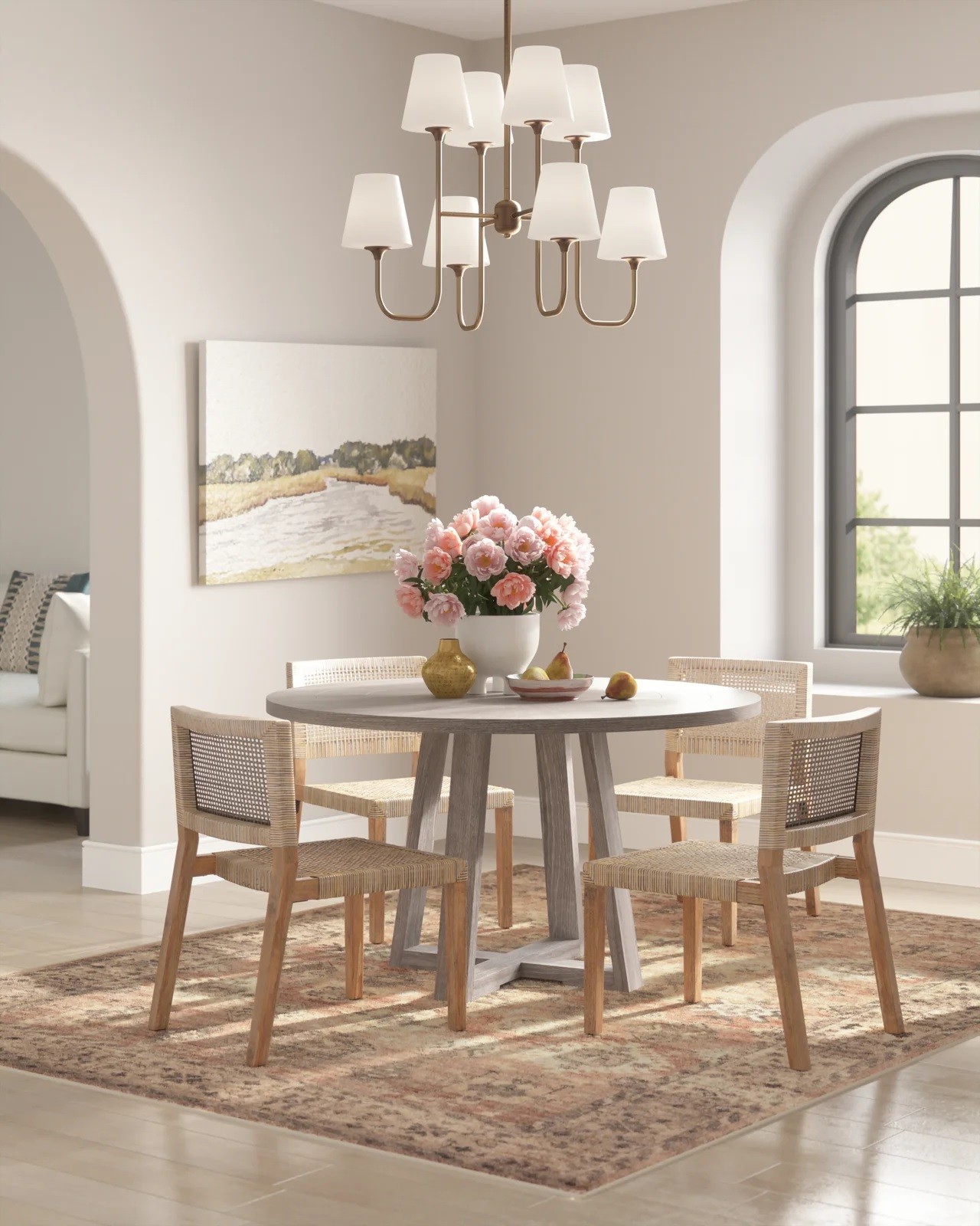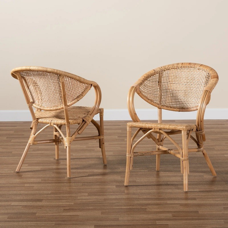 Handwoven rattan and resilient mindi wood construction give these dining chairs an artisanal aesthetic sure to make any dining room feel warmer and more welcoming. Each set includes two fully assembled chairs that are ready to enjoy wherever you choose to place them.