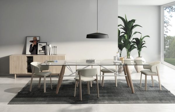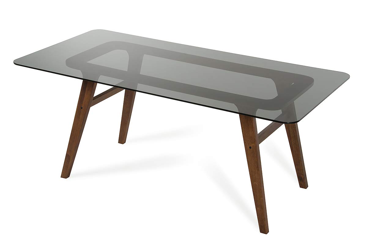 Here is another dining table with mid-century modern flair, this time large enough to seat six. The glass tabletop enjoys rounded corners – a feature that not only looks stylish, but also appeals to families with younger children.