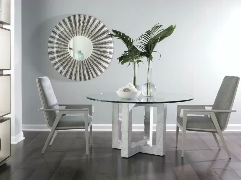 Glass and Stone Round Glass Dining Table