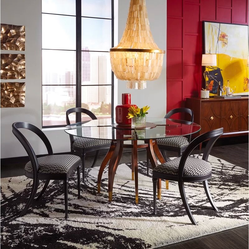 Presentation is a crucial ingredient in any recipe – after all, every dish is first enjoyed with the eyes. This idea can extend to the entire dining room environment where atmosphere and ambiance set the tone before anyone even lifts a fork. Glass-topped dining tables are the focus of this product spotlight. Glass surfaces feel clean, sophisticated, and streamlined. If transparent, a glass tabletop can extend the decorative influence of its base below. Glass tables often trend contemporary, but this collection spans a variety of styles to suit a spectrum of interior themes. Find the perfect glass table for your home with these handpicked selections.