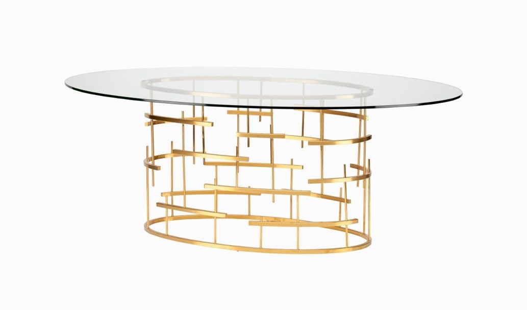 Oval Glass Dining Table with Gold Base