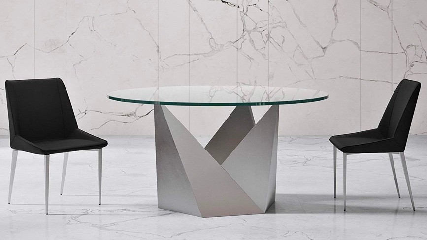 Round Glass Dining Table With Modern Steel Base