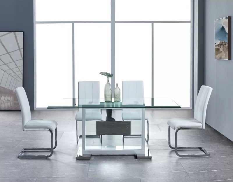 Minimalist Modern Glass Top Dining Room Table