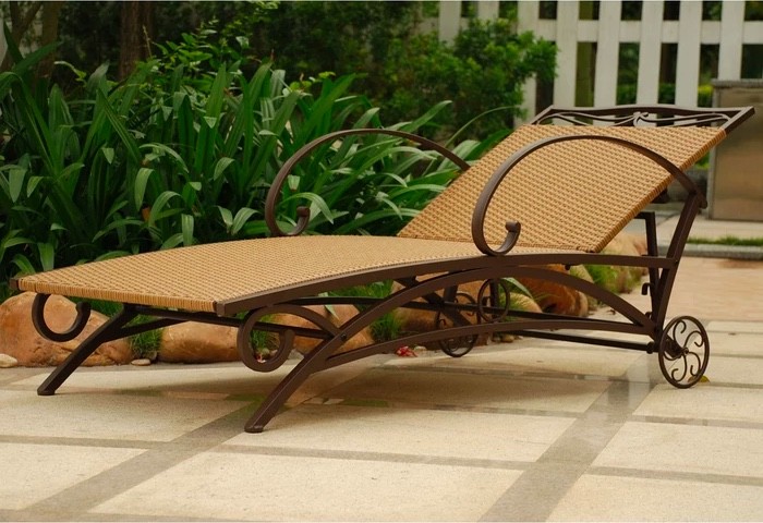 Add an elegant touch to your backyard decor with this traditional metal lounger. This option features an elegantly curved 'Mandalay' design, 5 back rest positions, and sturdy iron build. Available in Hammered Bronze and Dark Brown (shown).