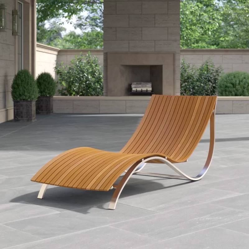 The sweeping lines of this Tres Chic chaise lounge make a bold statement. The mix of wood and metal is a bit less common for outdoor loungers, so it definitely has a distinct feel.
