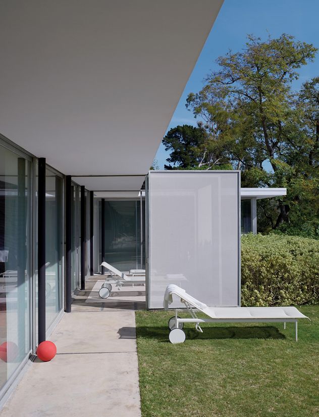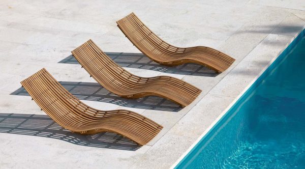 This modern teak chaise lounge will cradle your body low to the ground. Want a lift? A stainless steel support is also available to raise this design closer to the height of a traditional lounger.