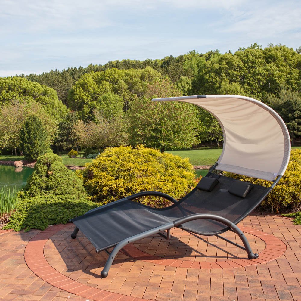 Lounging is even better when it's for two. Enjoy the nice weather with a partner while you lounge on this double chaise lounge with a canopy. Or just use that extra room for yourself—no judgement here! Available in Sienna or Black (shown).