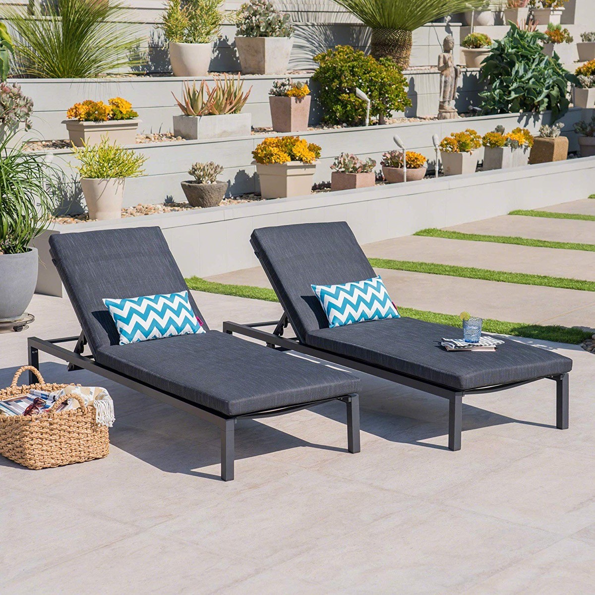 Black Outdoor Water Resistant Cushion Chaise Lounge