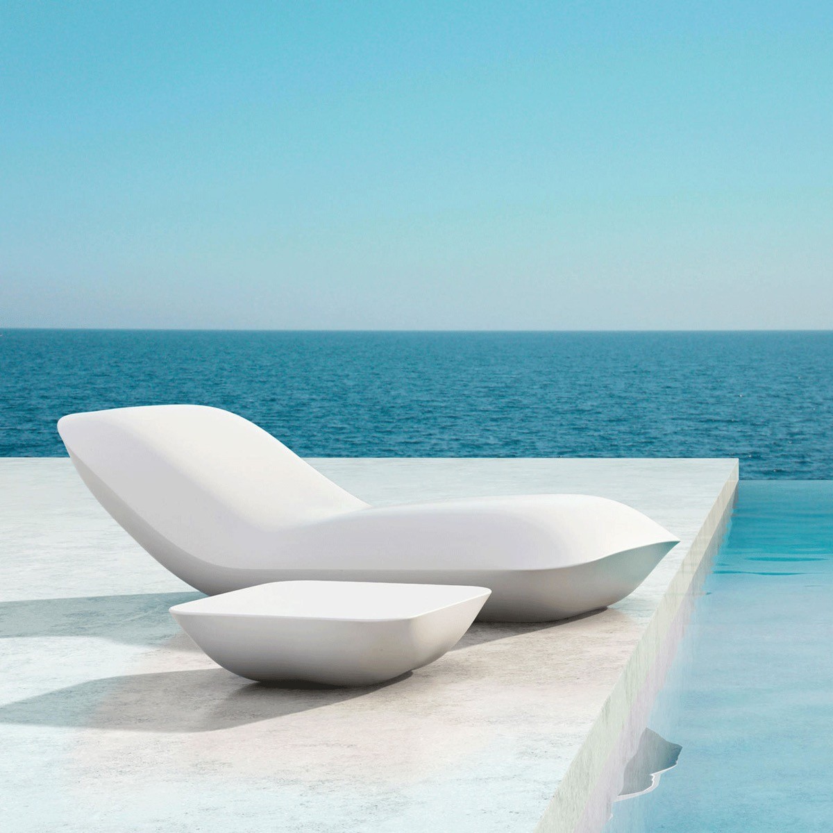 Keep it minimal and fresh with the Vondom pillow outdoor chaise lounge. Its 100% recyclable polyethylene build means that it is ready for everything from storms to harsh UV rays. Available in 20 colors.