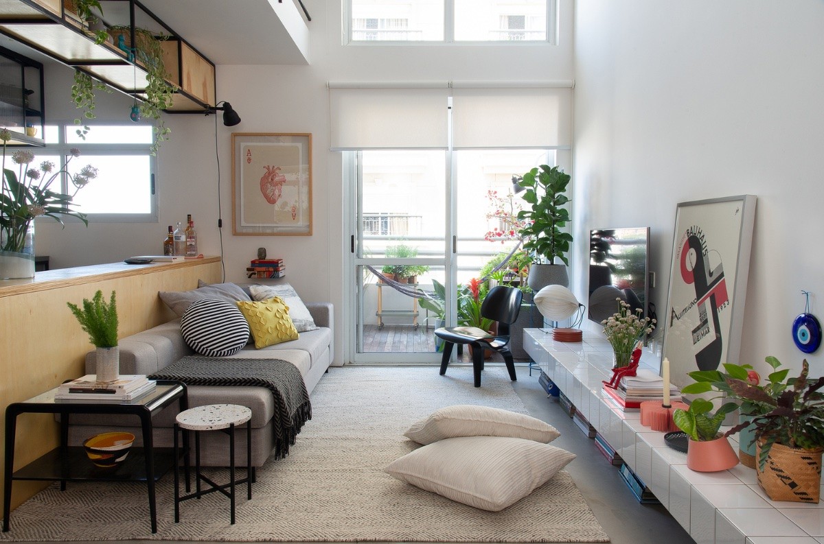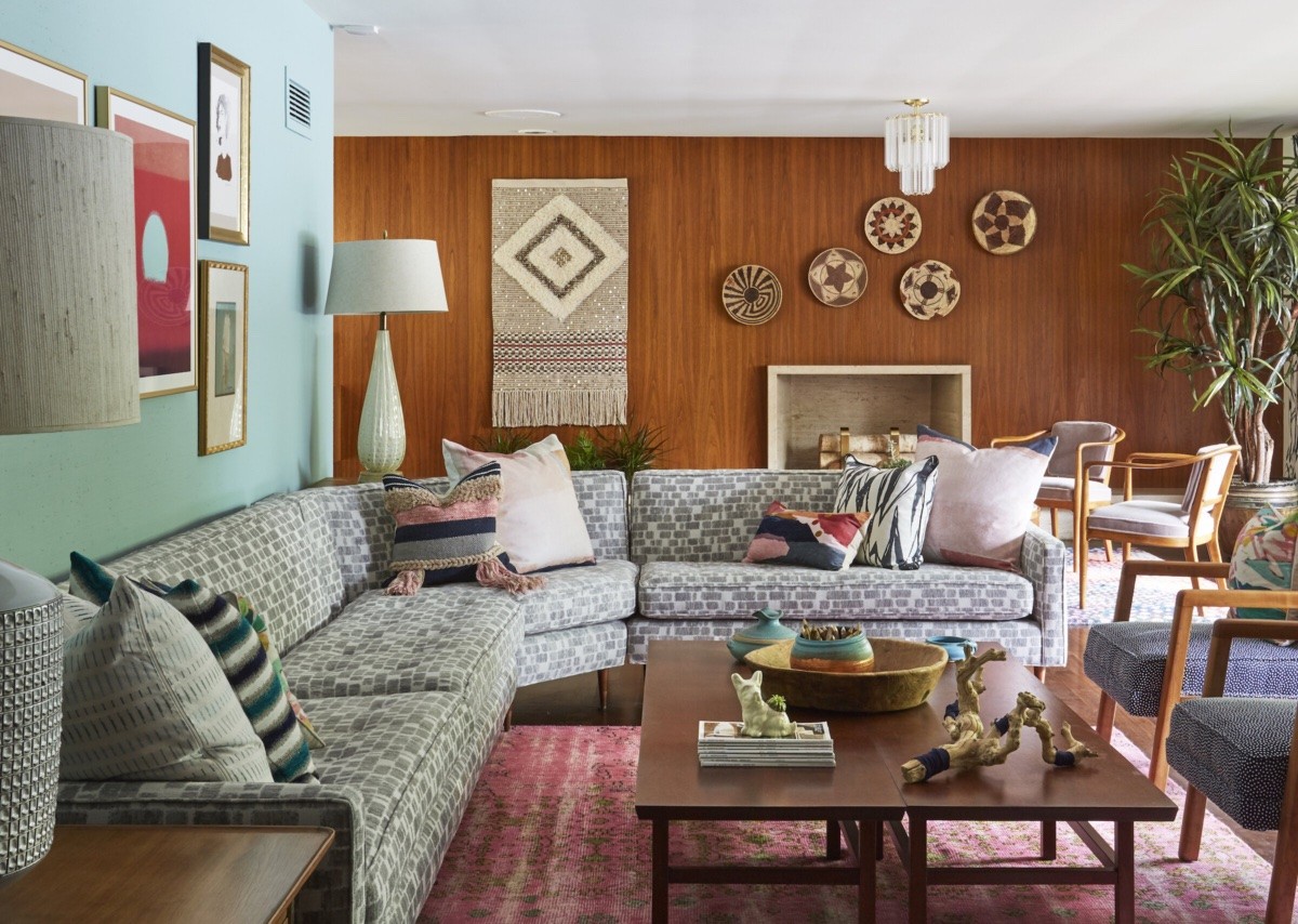It’s all in the accessories. Even a simple living room layout can receive a splash of eclecticism in the form of colorful planters and throw pillows.