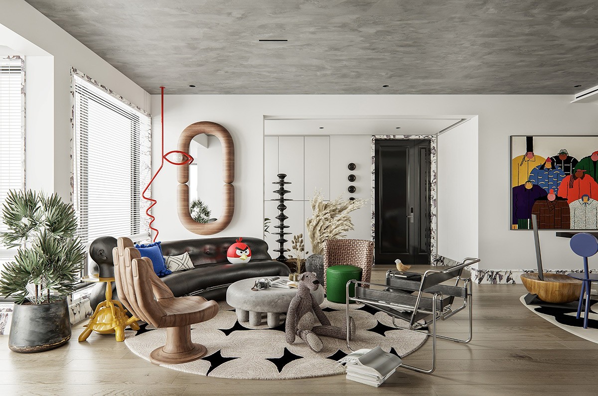 An ode to designers everywhere. If you have a deep admiration for designer furniture pieces, organize your fascination into a fashion-forward furniture line up around the room.