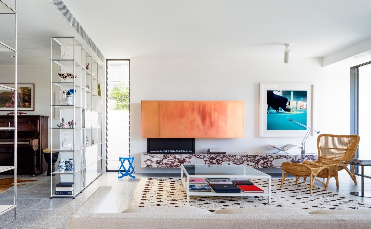 Crisp eclecticism. Whilst this living room design displays a wide array of colors and styles, it maintains a crisp aesthetic with sleek linearity.