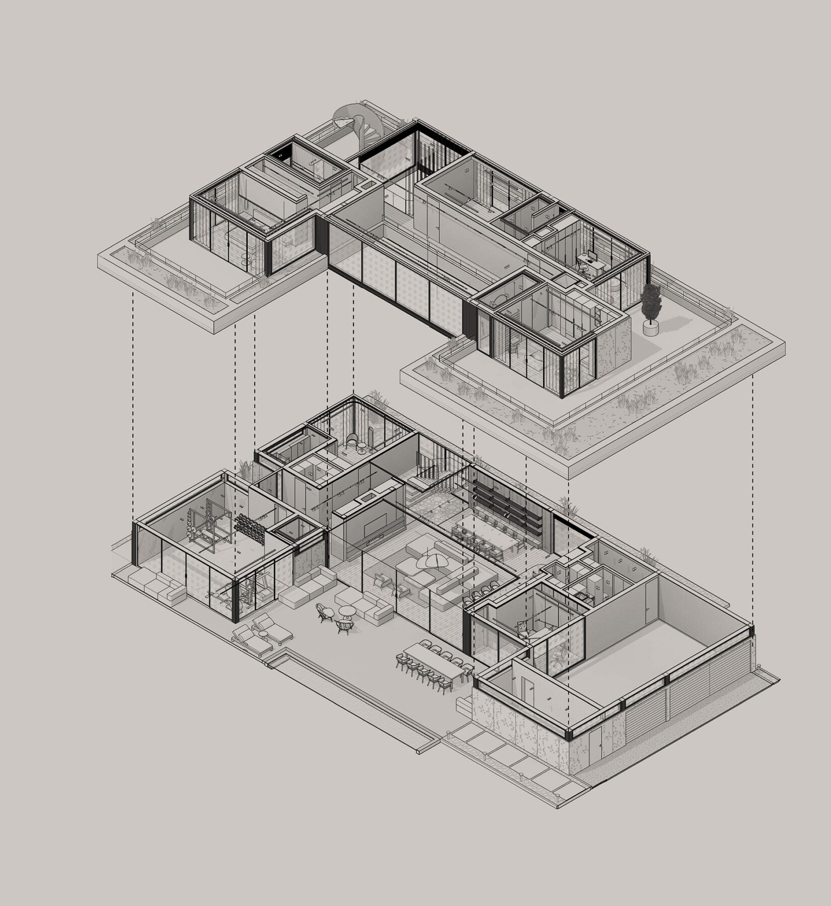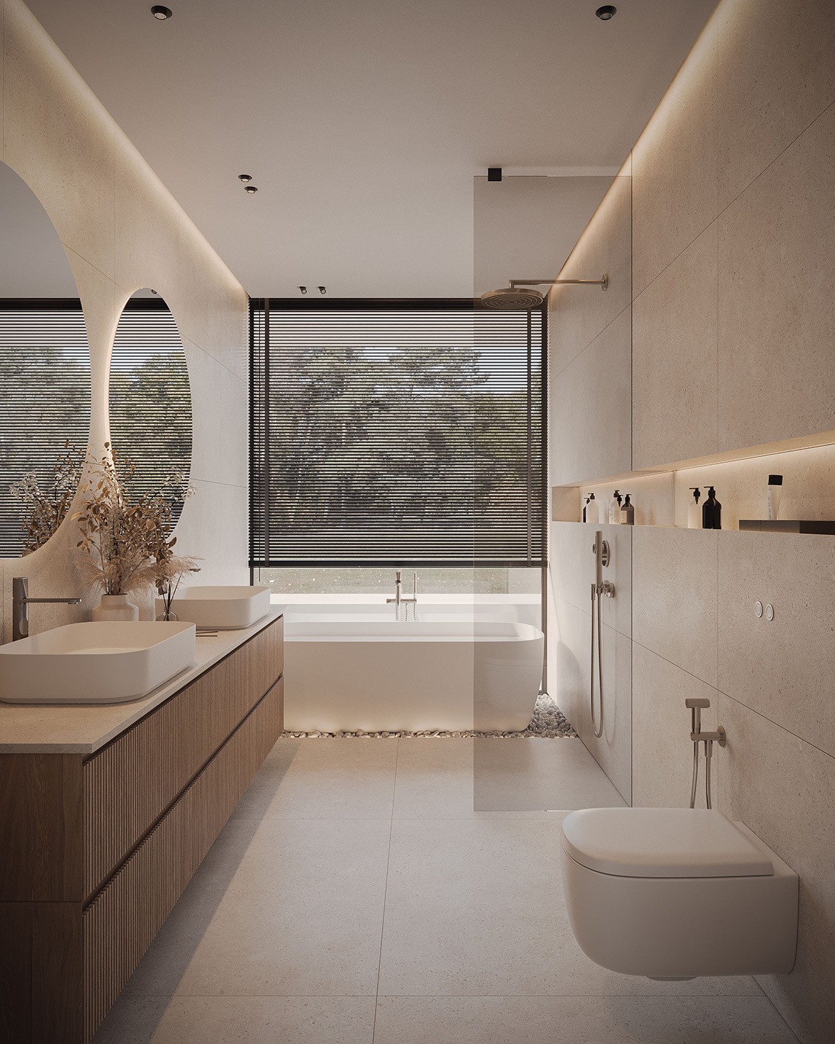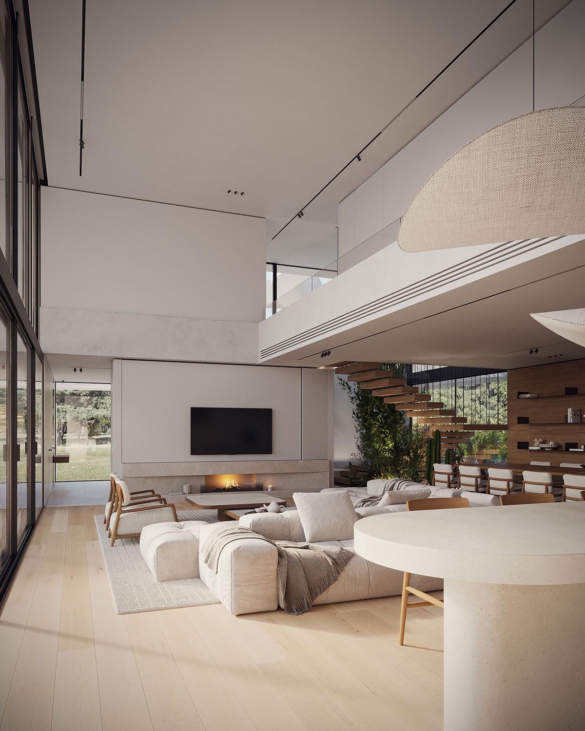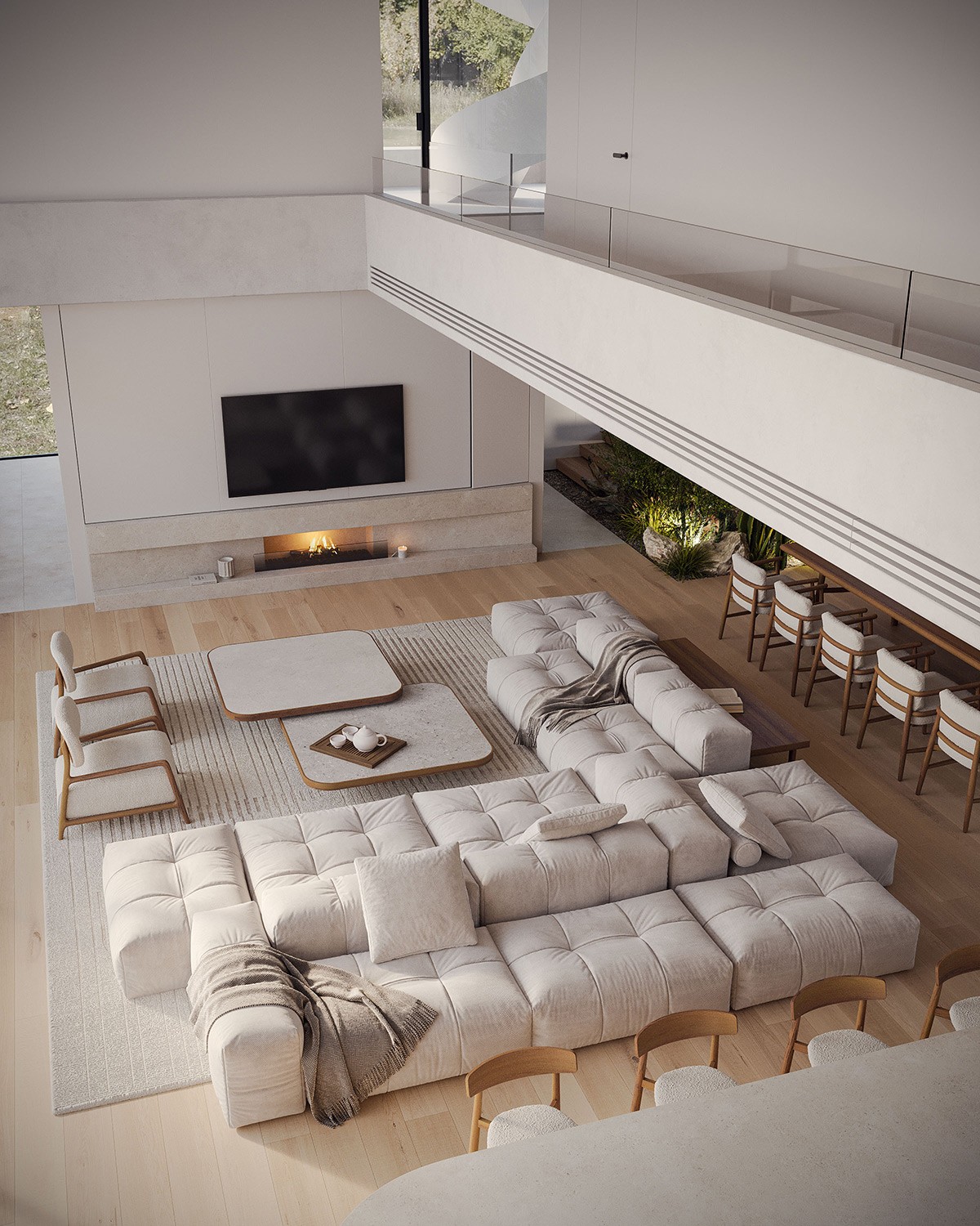 Welcome to a villa where modern architecture meets nature in perfect harmony. This stunning residence by Vastu Villa features expansive glass walls that blur the lines between indoor and outdoor living. The green roofs not only add an eco-friendly touch but also enhance the villa's seamless integration with its lush surroundings. Inside, the open-concept design creates a light-filled, airy ambiance, adorned with plush, neutral furnishings that invite relaxation. This villa is a testament to the beauty of simplicity and the elegance of thoughtful design, offering a serene retreat that celebrates both contemporary style and natural elements. Explore this unique blend of luxury and tranquility.