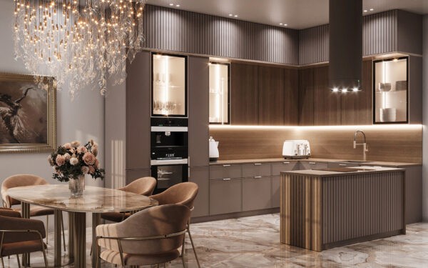 Tatiana Fedina’s kitchen visualization is a stunning blend of modern sophistication and warmth, brought to life through the use of Mocha Mousse tones. The kitchen seamlessly balances functionality and luxury, offering a glimpse into what happens when design meets artistry.