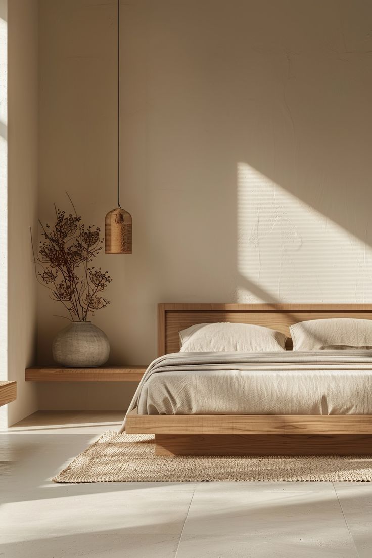 Natural materials are the backbone of a Japandi bedroom because they create a calm, grounded atmosphere that supports rest. Wood, linen, cotton, wool, clay, and stone introduce warmth and tactility without visual clutter. These materials age beautifully and feel honest, which aligns with both Japanese and Scandinavian design philosophies. In a bedroom, natural materials help soften acoustics, regulate temperature, and make the space feel more breathable. Whether it’s a wooden bed frame, linen bedding, or a wool rug underfoot, these elements work quietly together to create a sleep environment that feels balanced, timeless, and deeply restorative.