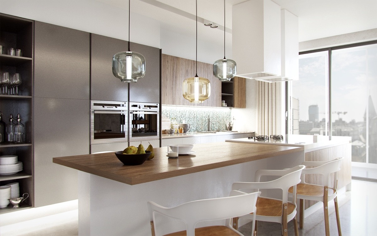 Kitchen lighting requires the careful consideration of two purposes. Ideally, it should illuminate the work surfaces where you conduct most of your preparation, and it should provide welcoming ambiance during dinner or evening hours. Pendants fill a special role in the kitchen, in addition to the two requirements mentioned previously – kitchen pendants are the preferred choice for decorators who want to make a creative statement in an otherwise utilitarian space, filling in the emptiness between the countertops and ceiling with suspended works of art. If you're looking for kitchen inspiration, this modern lighting guide might help!